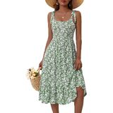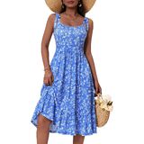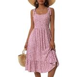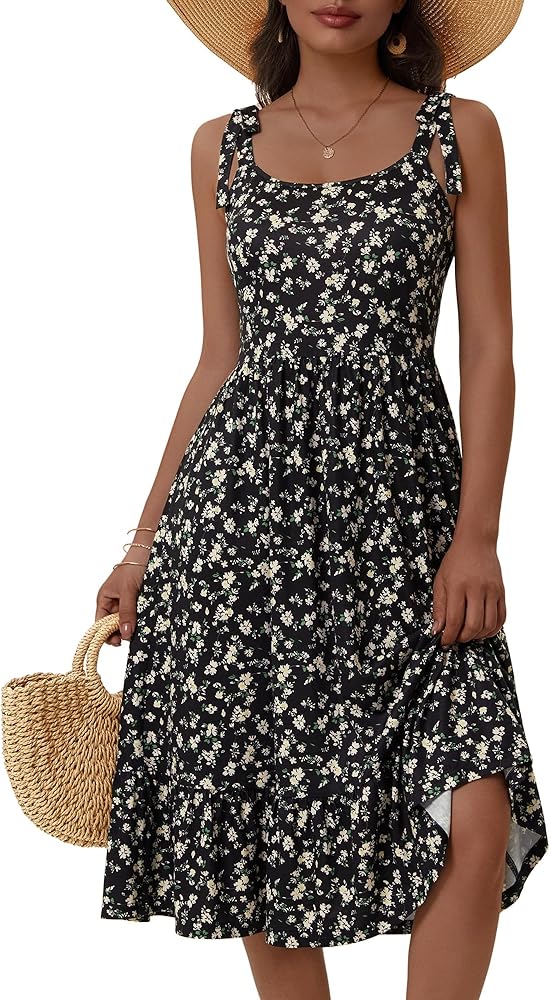 HUHOT المرأة 2026 الصيف الربيع فستان الشمس الأنيق الأزهار القوس الأشرطة مع جيوب مرونة الخصر فساتين متوسطة الطول in Kuwait