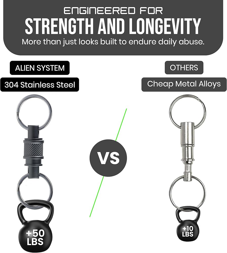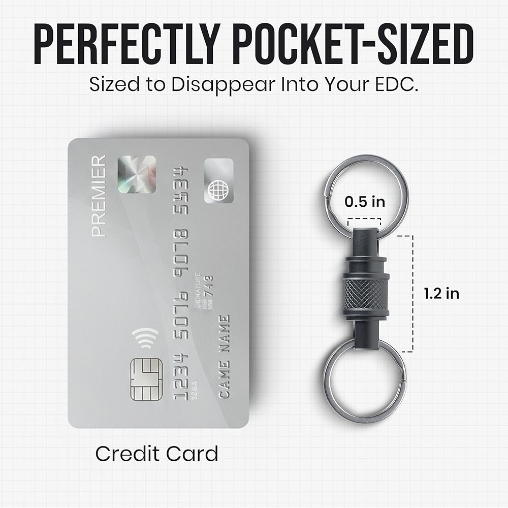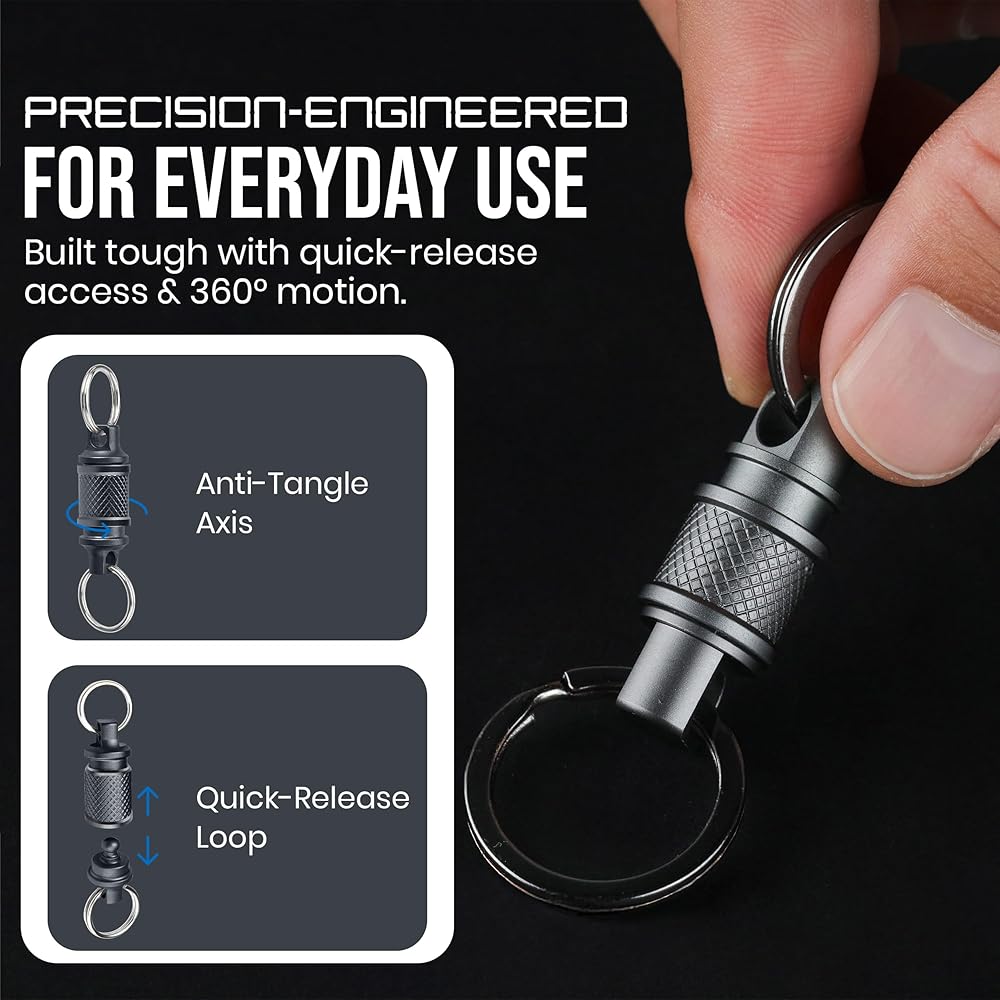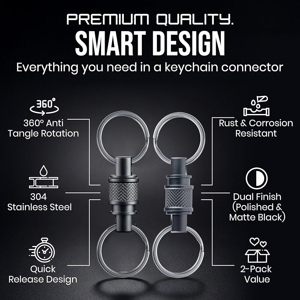 سلسلة مفاتيح سريعة الفك من الفولاذ المقاوم للصدأ (عبوة من قطعتين) - سلسلة مفاتيح دوارة لتنظيم المفاتيح - نظام فك سريع لحلقة مفاتيح شديدة التحمل وقابلة للفصل