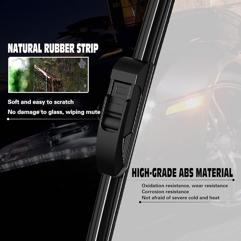 ●Professional Design: Improved flexible spine design ensures maximum windshield contact.