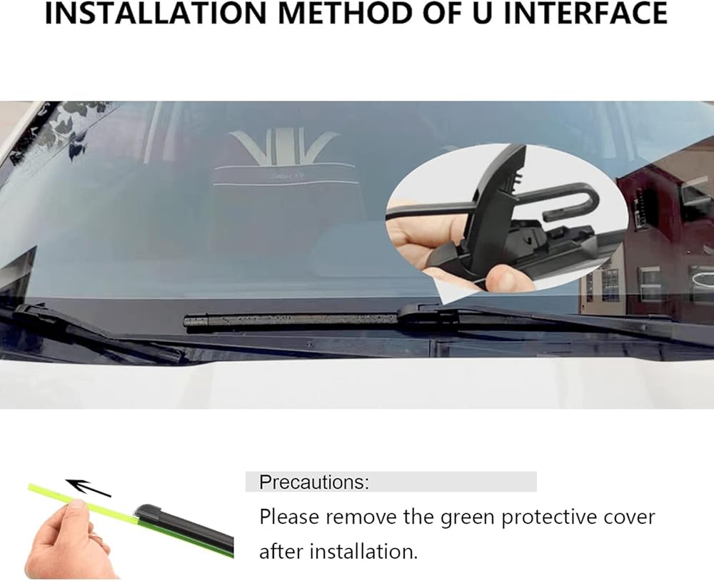 2: Install the wiper blade. Remove the green plastic strip wiper cover after installation and before first use. Because that's just a protective cover for the rubber blade.