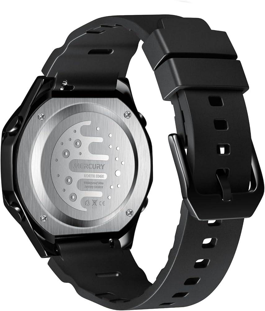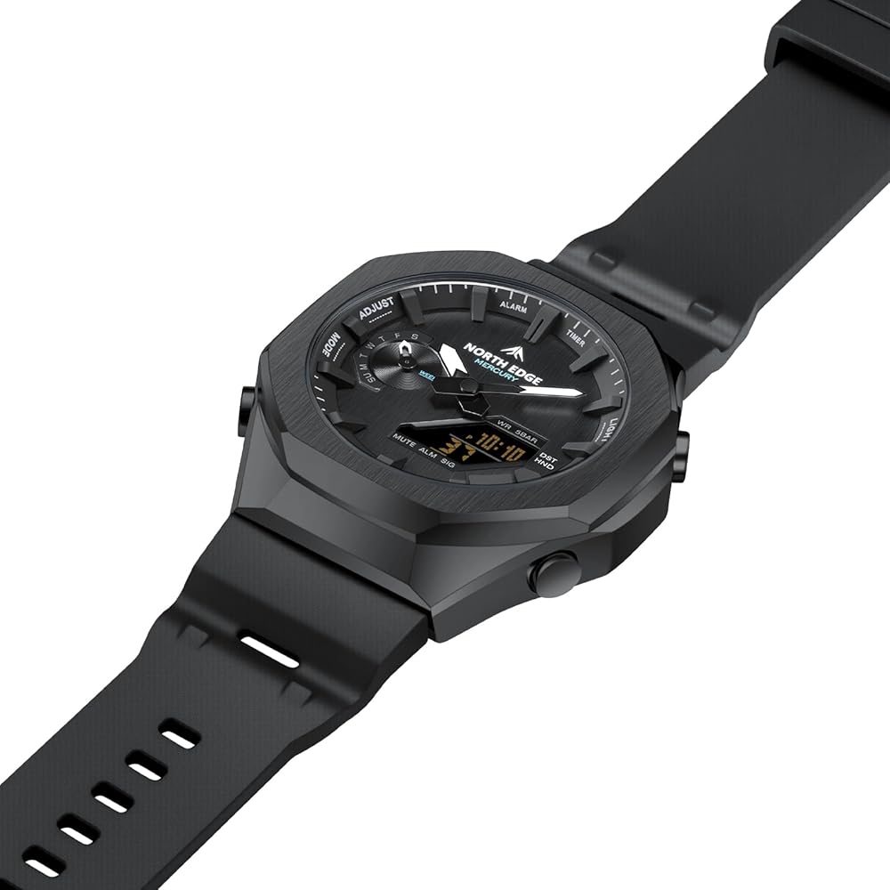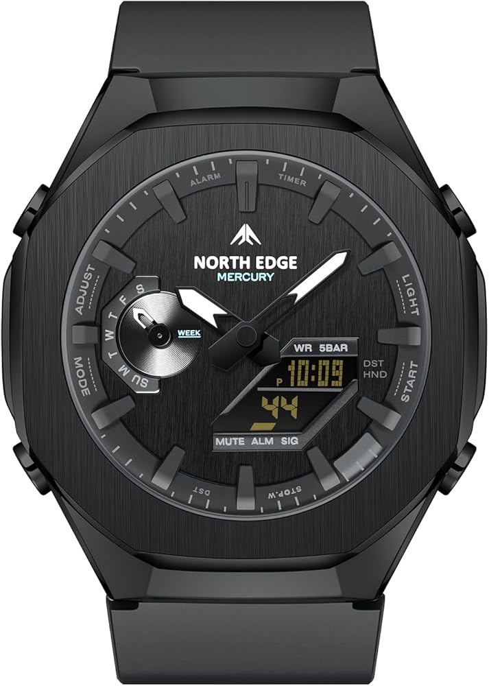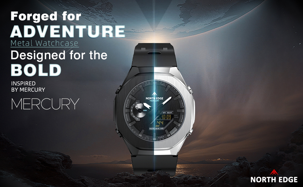ساعة نورث ايدج ميركوري الرياضية الرقمية للرجال مقاومة للماء في الهواء الطلق مع التوقيت العالمي، ساعة إيقاف، العد التنازلي، 5 منبهات، تقويم تلقائي، إضاءة خلفية LED، ساعة لياقة بدنية متعددة الوظائف للسفر والجري