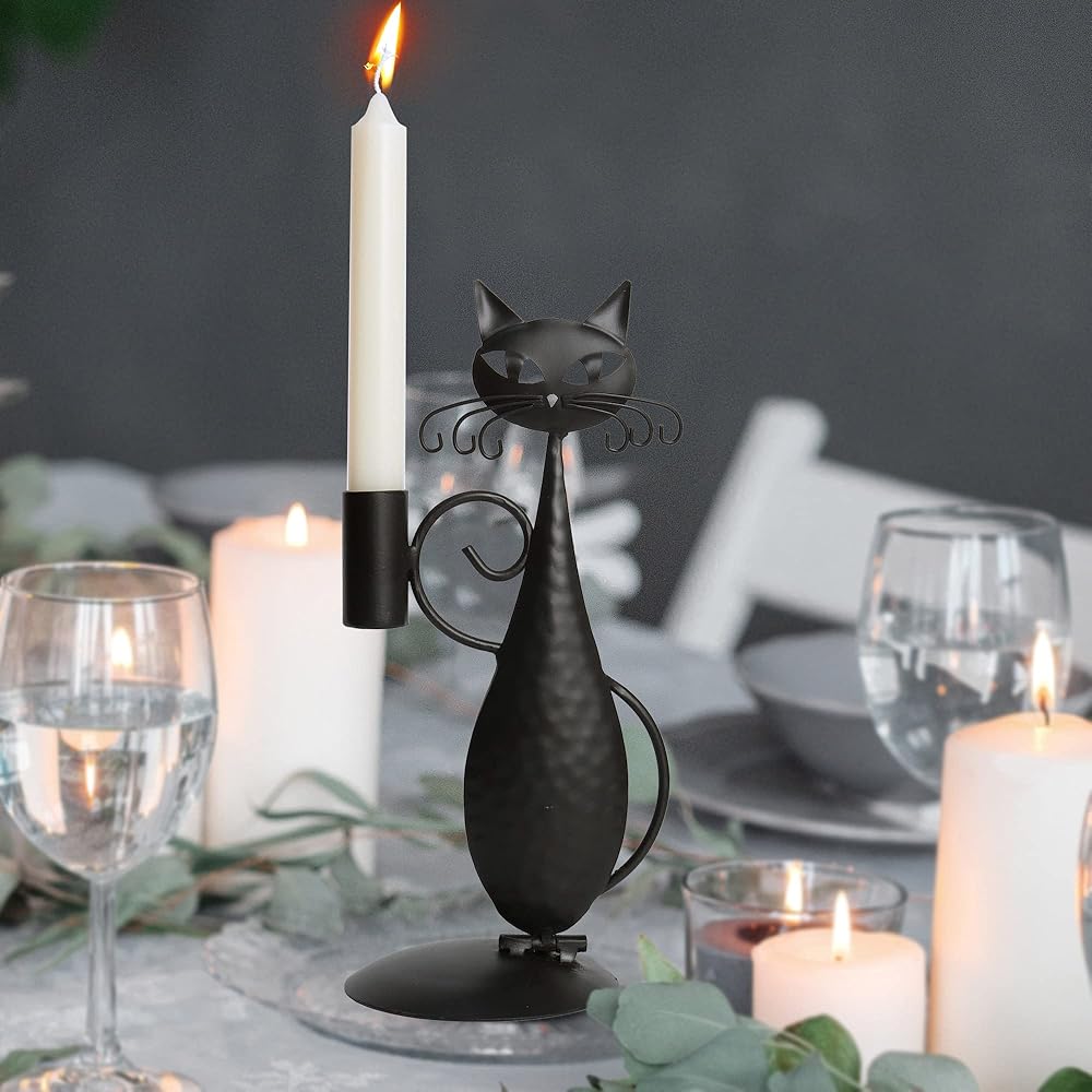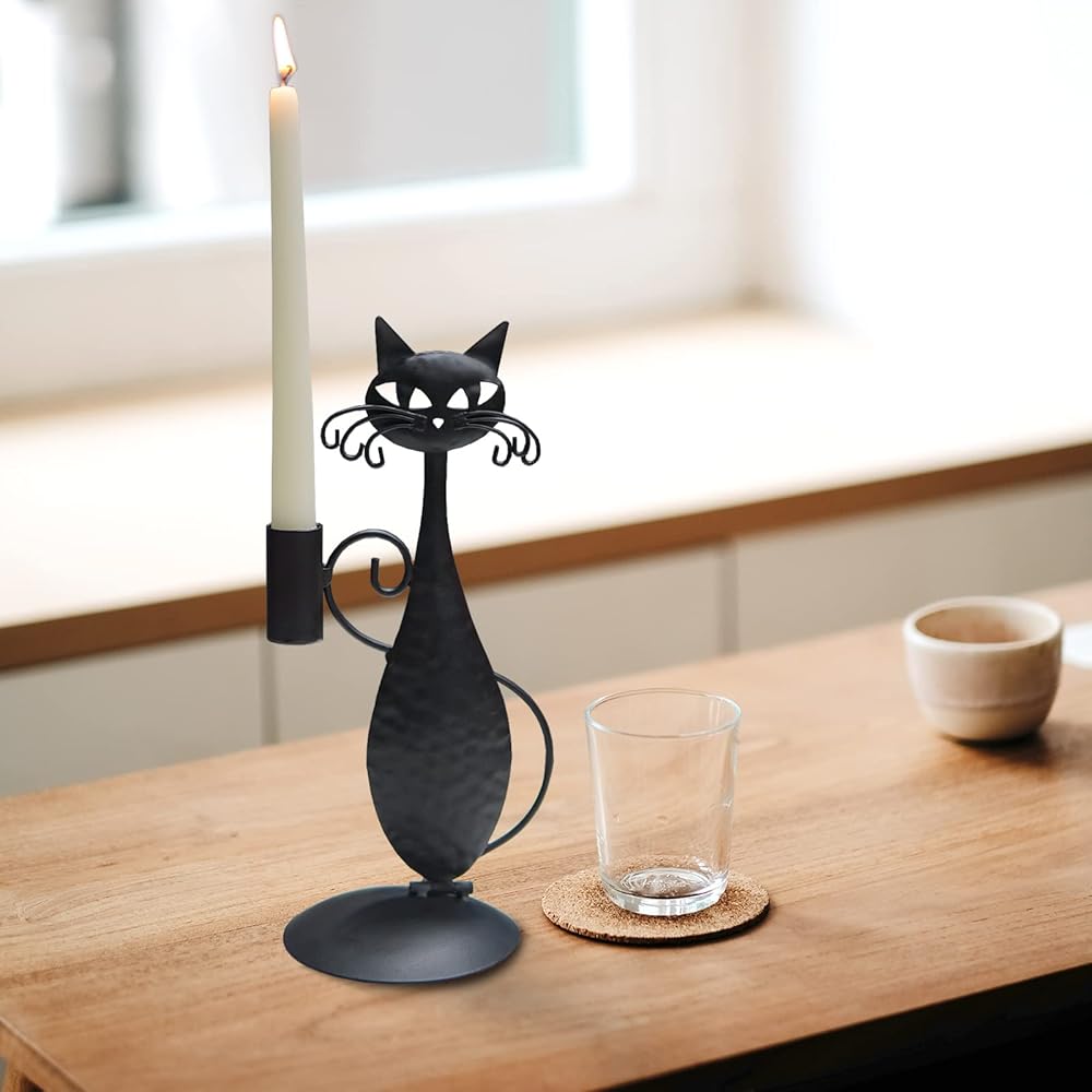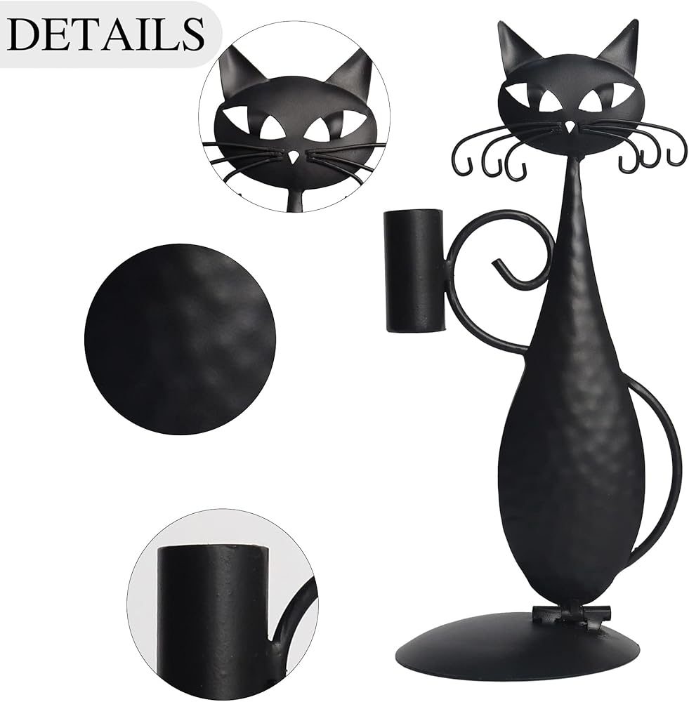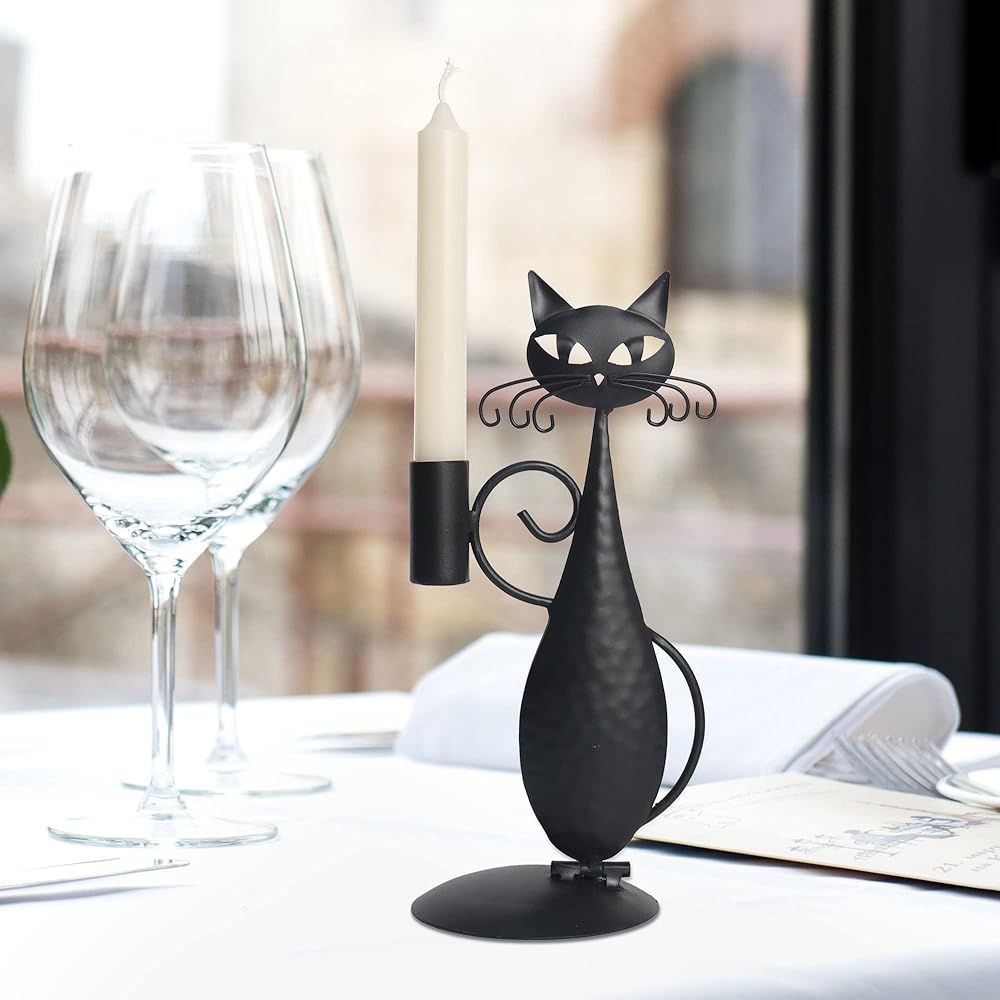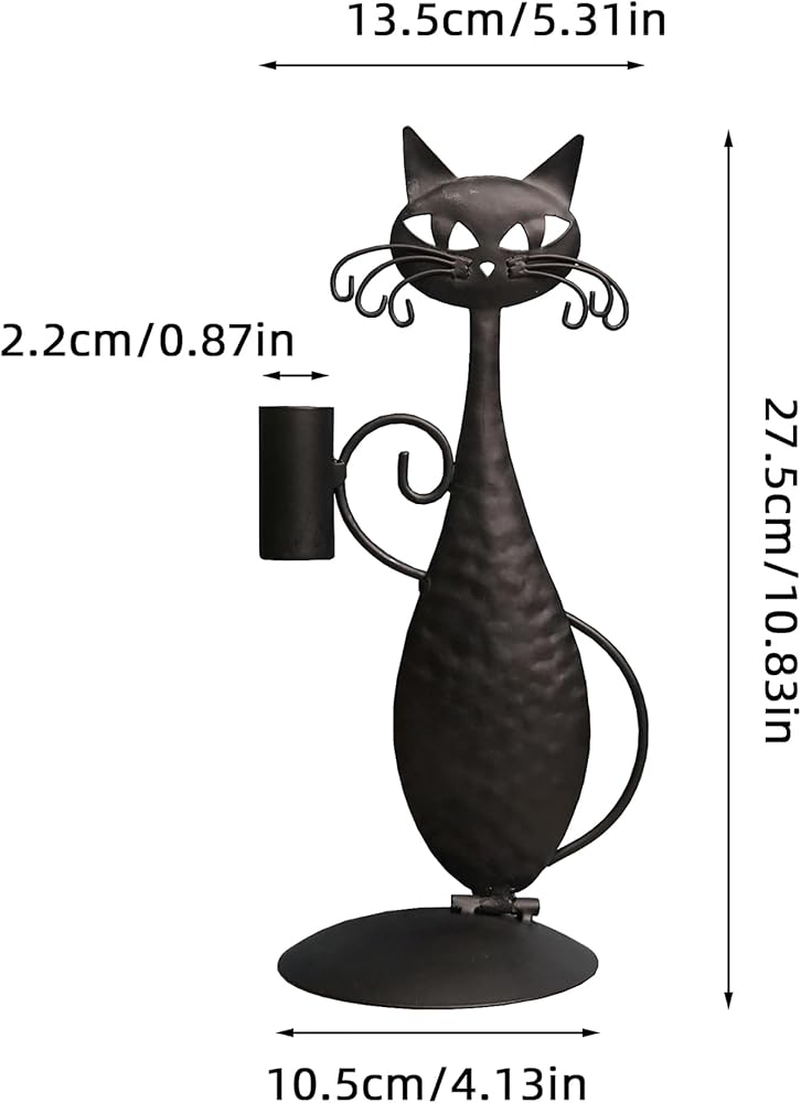 • HANDMADE: Our cat candlestick is made of metal. After repeated beating by hand, the cat's head and body are created. Each dent on it is evidence of hard work. Then weld the cat tail supporting the candle base and the whole shape of the support base, and apply black powder coating. A lovely, durable cat candlestick is ready. (Note: due to manual manufacturing, there are some errors, which is normal and not a product quality problem.Please take the real object as the standard.)