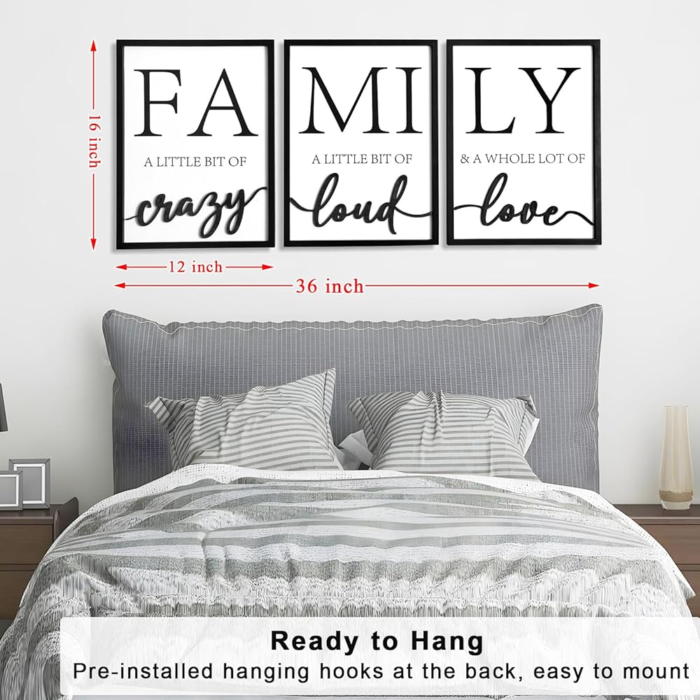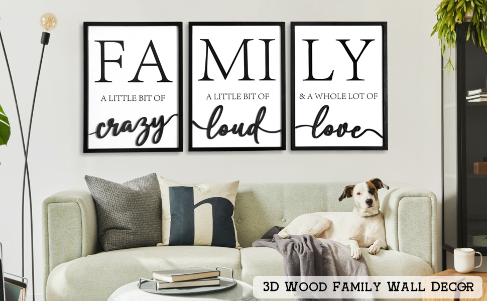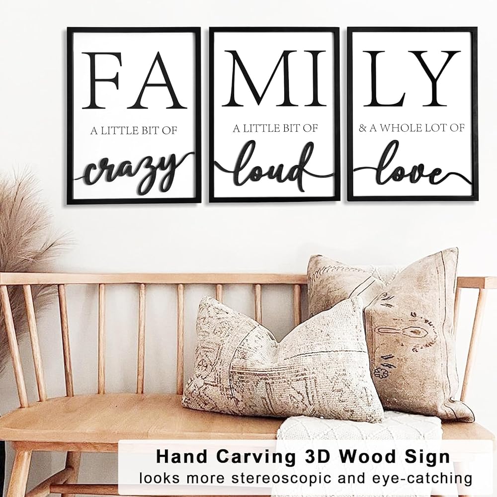 ديكور جدار عائلي خشبي ثلاثي الأبعاد، لوحة فنية جدارية مؤطرة مقاس 91.44 سم × 40.64 سم، صور ثلاثية الأبعاد لغرفة المعيشة (جاهزة للتعليق، 30.48 × 40.64 سم، مجموعة من 3 قطع، مؤطرة)