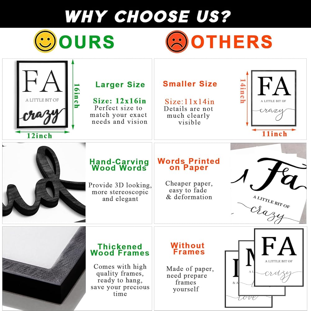• 【علامة خشبية ثلاثية الأبعاد منحوتة يدويًا】على عكس الكلمات المطبوعة الورقية الأرخص الأخرى، فإن ديكور الحائط العائلي الخاص بنا مرصع بكلمات خشبية ثلاثية الأبعاد منحوتة يدويًا [مجنون]، [عالٍ]، [حب]، مما يجعل علامة العائلة تبدو أكثر مجسمة ولافتة للنظر. يمنح ديكور الحائط اللافتة المنزلية ثلاثية الأبعاد غرفتك مظهرًا فوريًا، ويعزز ذوقك وملمس حياتك اليومية، ويساعدك على الحصول على الكثير من الإطراء.