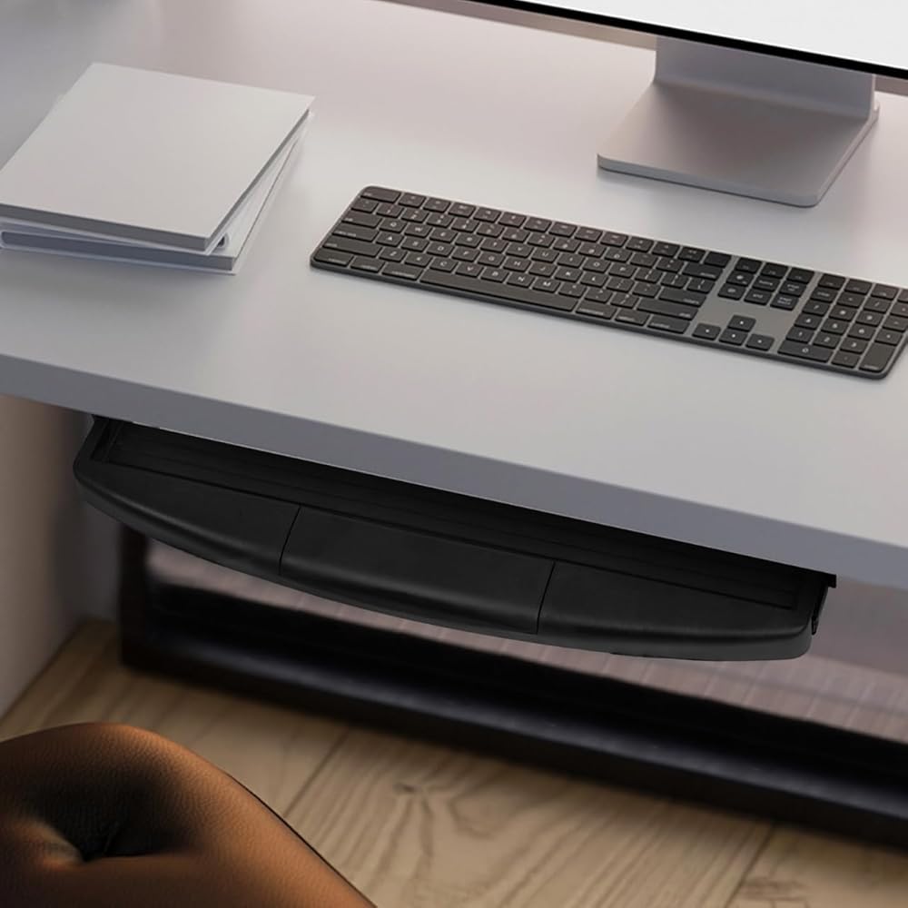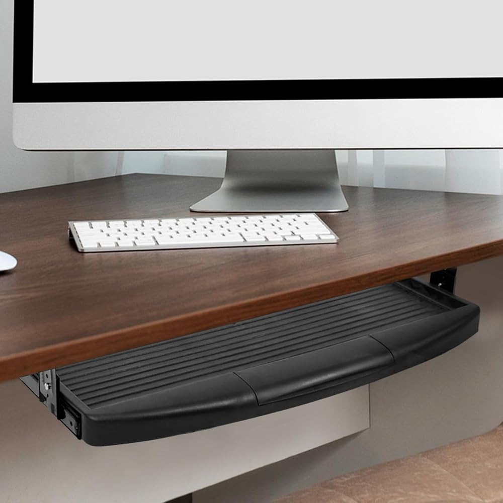 Space Efficiency: Designed to fit under your desk with compact dimensions of approximately 20.86 x 10.03 x 1.57 inches this keyboard tray helps maximize desktop space by hiding the keyboard when not in use