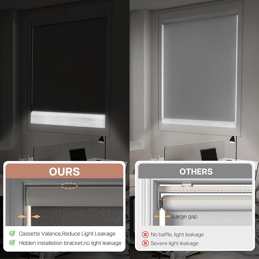 Blackout Blinds: Made of high quality linen fabric with thermal insulated coating. Blocking out 100% light for complete privacy, energy saving insulates against heat and cold, light control and UV protection for bedrooms, children's rooms and media rooms. Excellent for deeper and longer sleepers.