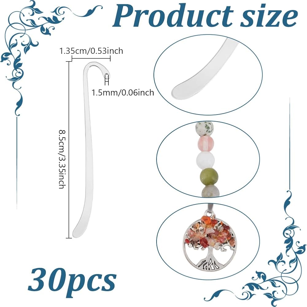 تصميم مبتكر: تأتي العلامات المرجعية بفتحات، مما يجعل من السهل عليك إضافة إكسسواراتك المفضلة عليها، مثل الشرابات والمعلقات وما إلى ذلك. كما أن الإشارات المرجعية فارغة حتى تتمكن من نقشها حسب رغبتك.