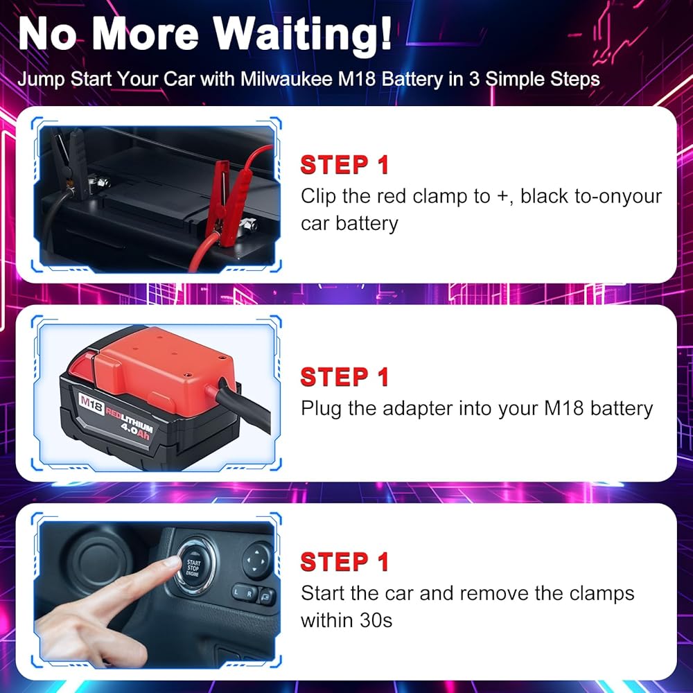 تعليمات التشغيل: خطوات تشغيل بسيطة: فقط قم بتوصيل المشابك الإيجابية والسلبية + أدخل البطارية للبدء. يرجى استخدامه بأمان وفعالية وفقًا للتعليمات، وسحب الكابلات في الوقت المناسب بعد البدء