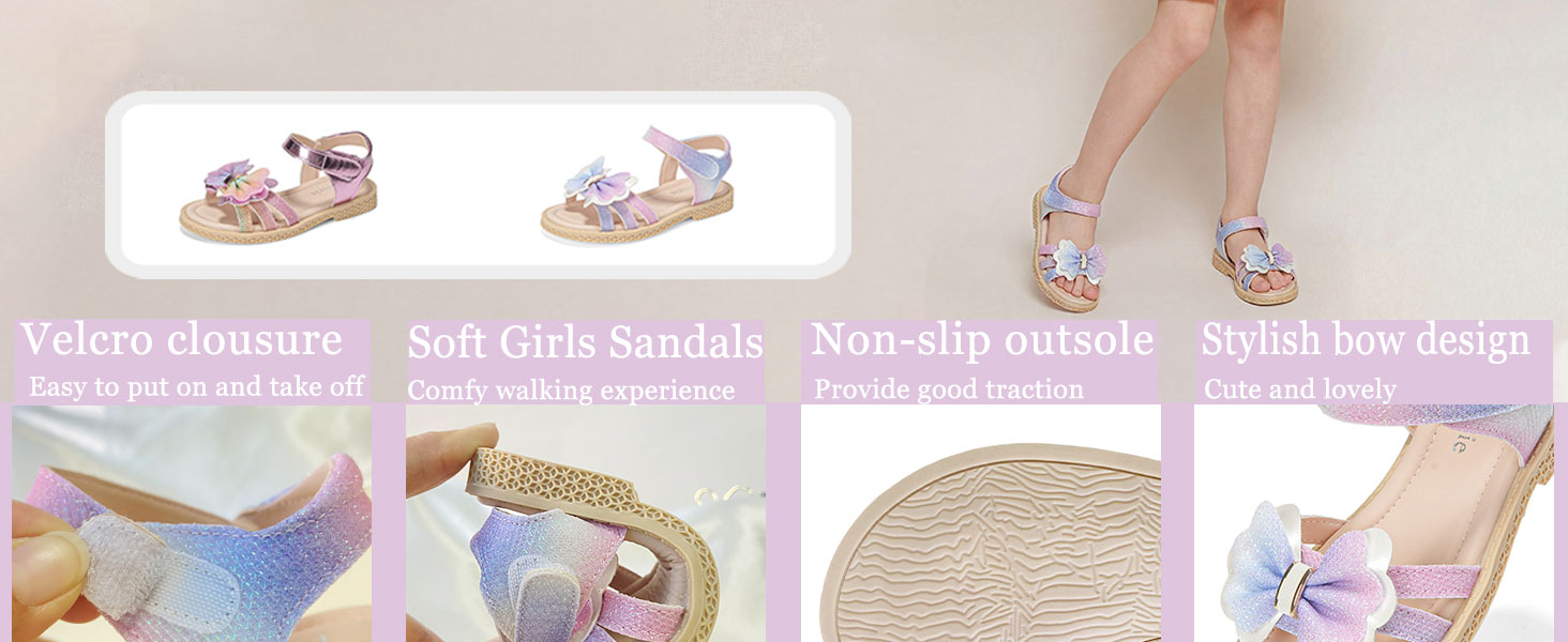 • GIRLS SANDALS SIZE:We offer our toddler girls size sandals chart to ensure that you could choose a perfect size for your little ones. Please measure your little girl's feet length and refer to our size chart to get the right girl dress sandals