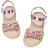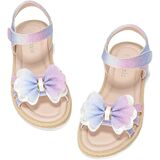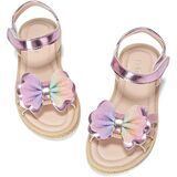 Add a touch of whimsy to your little one's wardrobe with these enchanting sandals. These delightful open-toe sandals feature stunning straps in shimmering pink, purple, and rainbow hues that catch the light with every step. The standout design elements are the two beautiful bows adorned, creating a magical look for special occasions or everyday wear. The comfortable ankle strap ensures a secure fit, while the cushioned footbed provides all-day comfort. The durable sole offers reliable traction, making these sandals both practical and stylish. These sandals pair beautifully with dresses, skirts, or casual outfits, making them a versatile addition to any wardrobe. These sandals strike the ideal balance between whimsical decoration and practical wear, making them ideal for special occasions or adding a touch of magic to everyday outfits. The combination of pastel colors and sparkly finish creates an ethereal look that young fashion enthusiasts will adore. Perfect for spring and summer occasions, these sandals bring both comfort and style to every step.