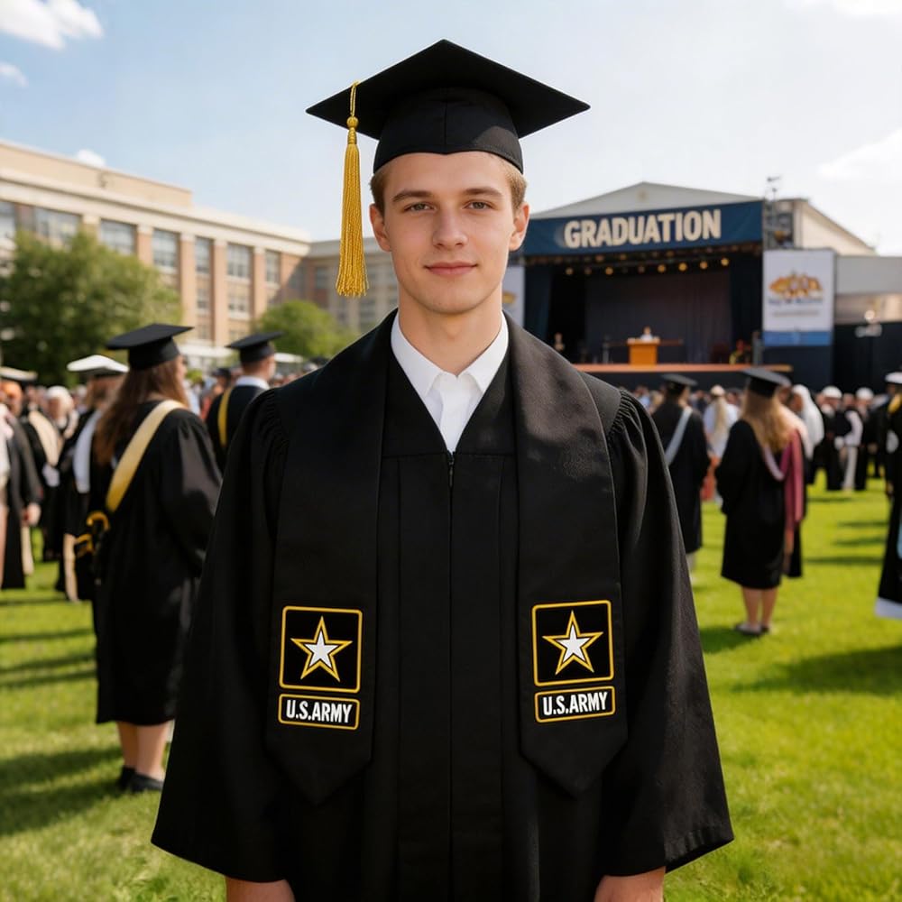 Authentic U.S. Army Emblem: This graduation stole proudly features the official U.S. Army star and text logo, symbolizing dedication, honor, and service. A meaningful accessory for graduates connected to the U.S. Army