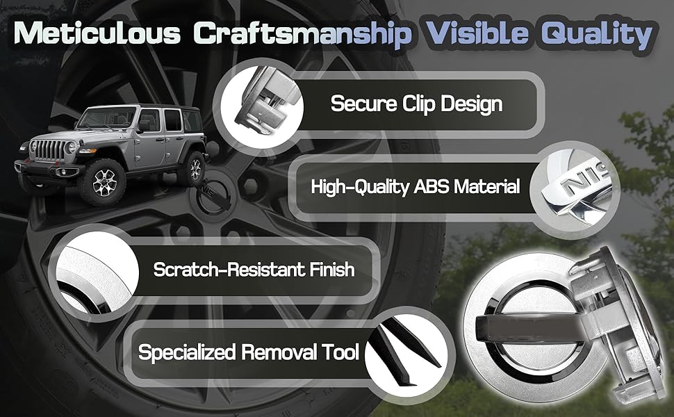 مادة ABS ممتازة للاستخدام طويل الأمد: مصنوعة من راتنج ABS عالي القوة - مقاوم للماء والغبار والصدأ، مع الحد الأدنى من خطر التشوه. تحافظ اللمسة النهائية الناعمة المقاومة للخدش على مظهر جديد تمامًا بمرور الوقت، وتتوافق بسلاسة مع جماليات عجلة OEM الخاصة بك.