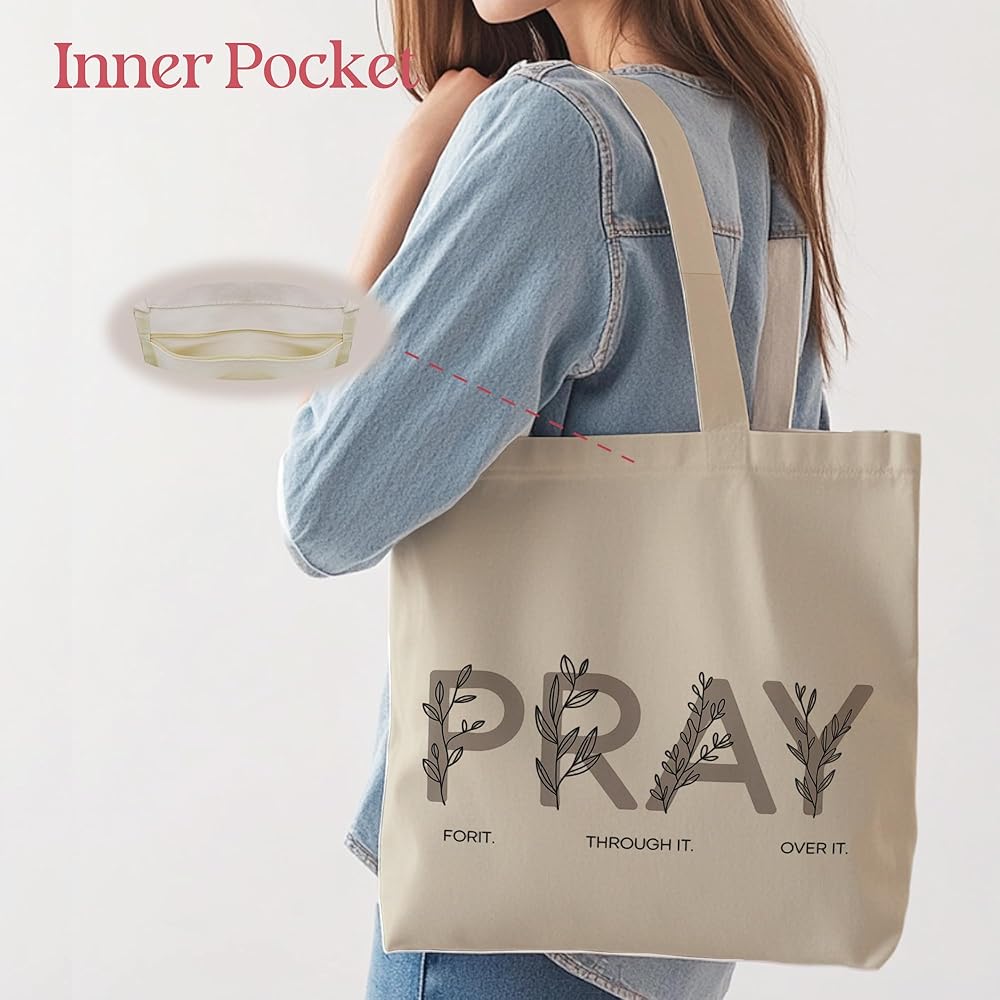 Christian Gifts for Women Inspiration Tote Bag, Pray for It, with Inner Pocket.