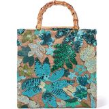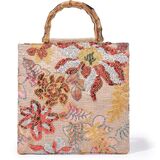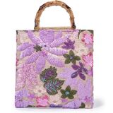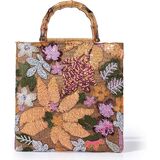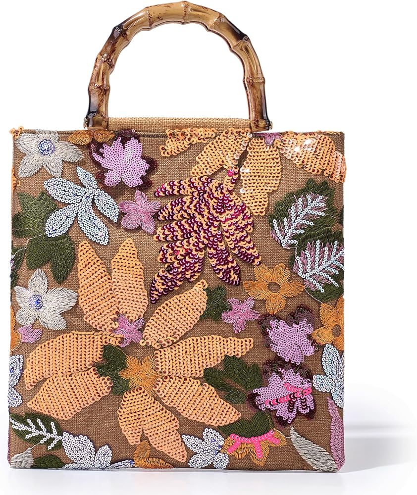 لطيف وفريد من نوعه: المقبض العلوي عبارة عن تصميم مفصل من الخيزران. تتميز المحفظة بنمط تطريز الأزهار والترتر. زخرفة الترتر تجعل أنماط الزهور أكثر ثلاثية الأبعاد. ملاحظة: لا تدع الترتر يمسك بملابسك.