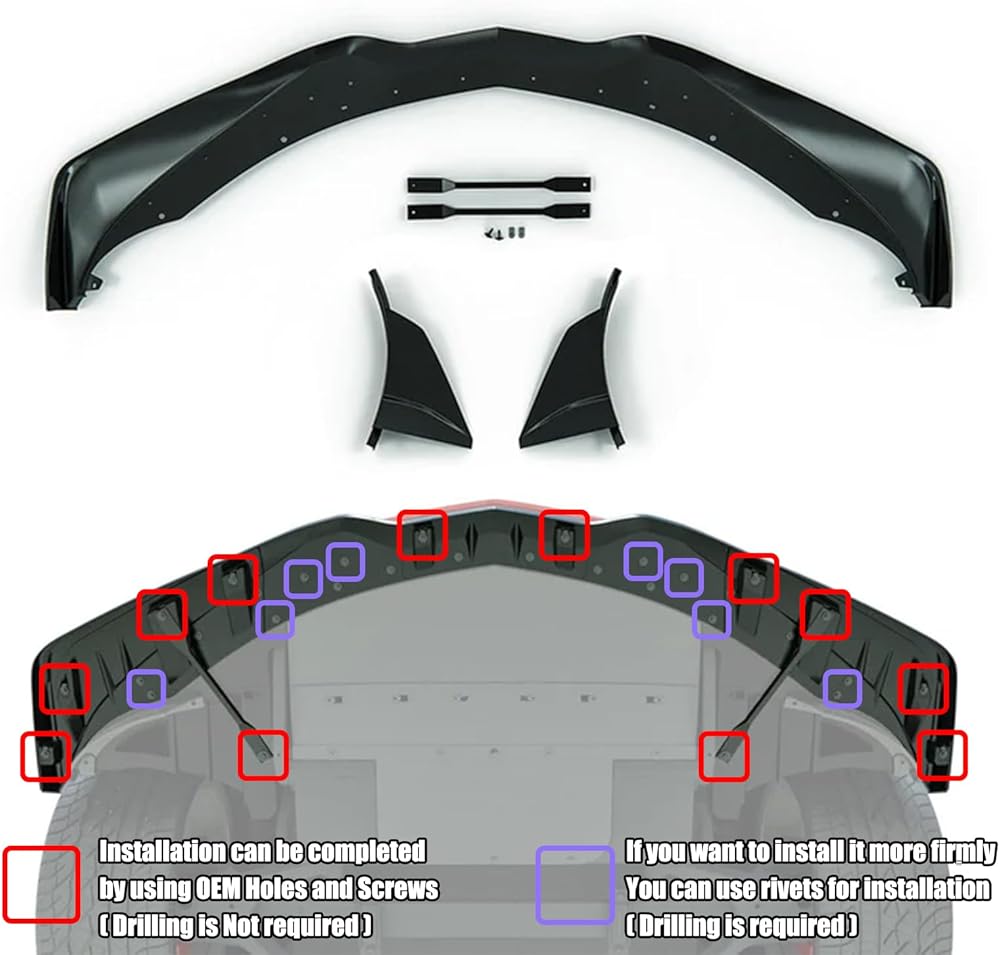 • Easy Installation - The front bumper lip comes with a straightforward installation process that requires no cutting, allowing you to upgrade your vehicle's front end quickly and effortlessly.Had pre drilled holes for the screw making mounting it a breeze
