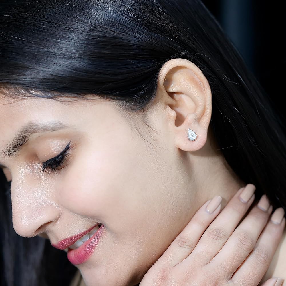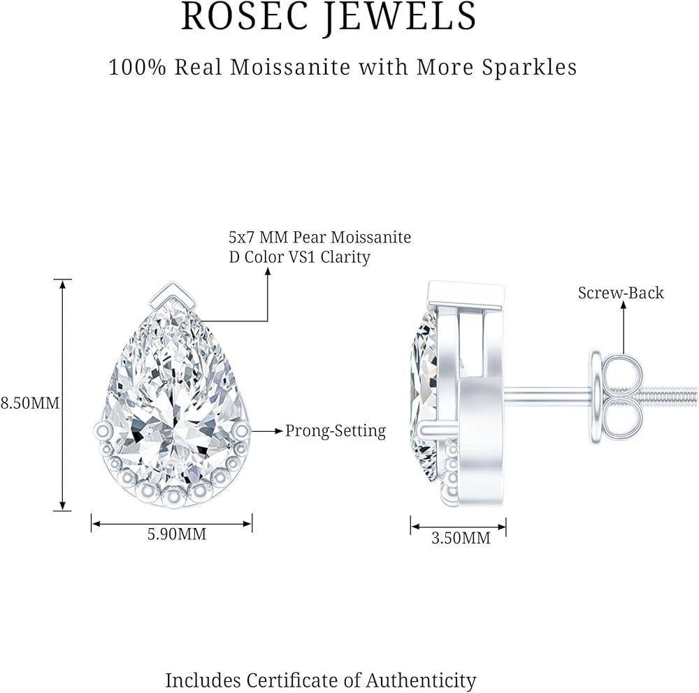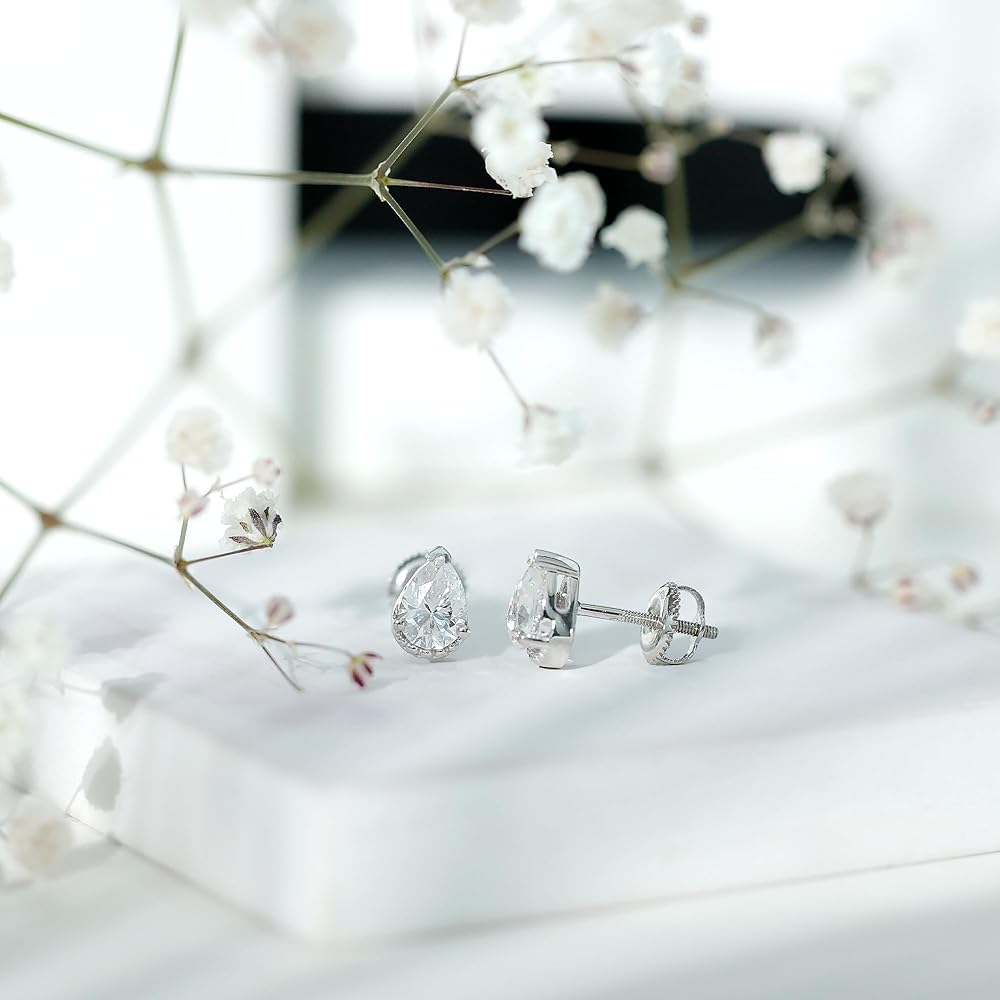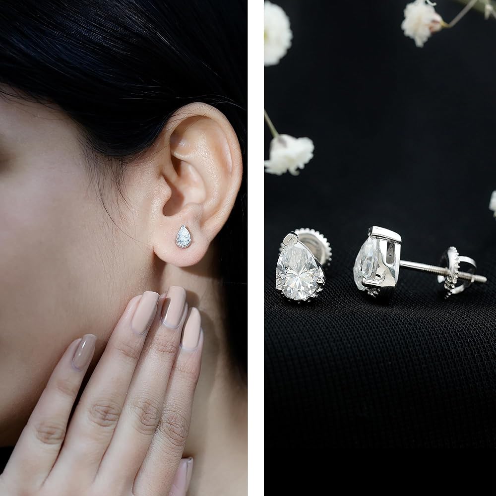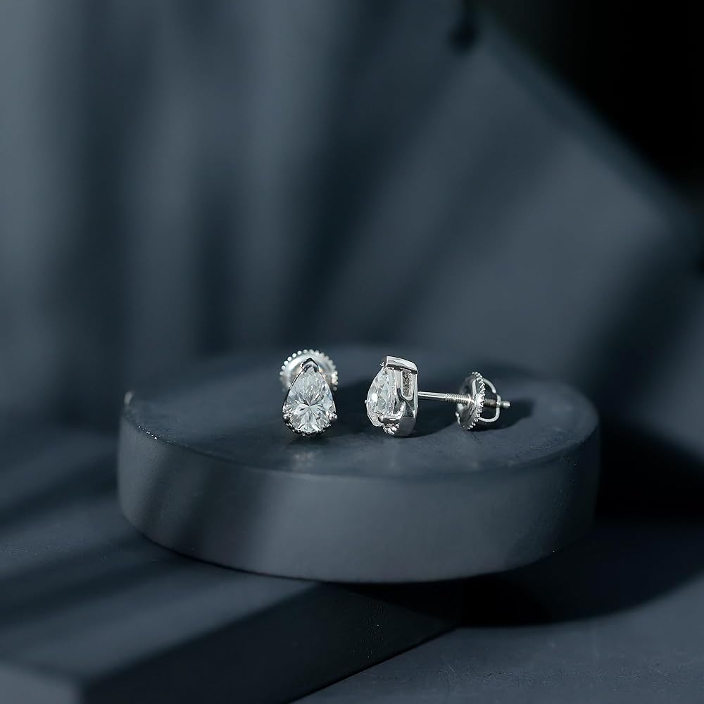 أضيئي مظهرك بالتألق الرقيق لأقراط المويسانتي المرصعة هذه. صُنعت هذه الأقراط المذهلة على شكل دمعة بإتقان، وتأتي مع قفل خلفي آمن لضمان راحة البال.