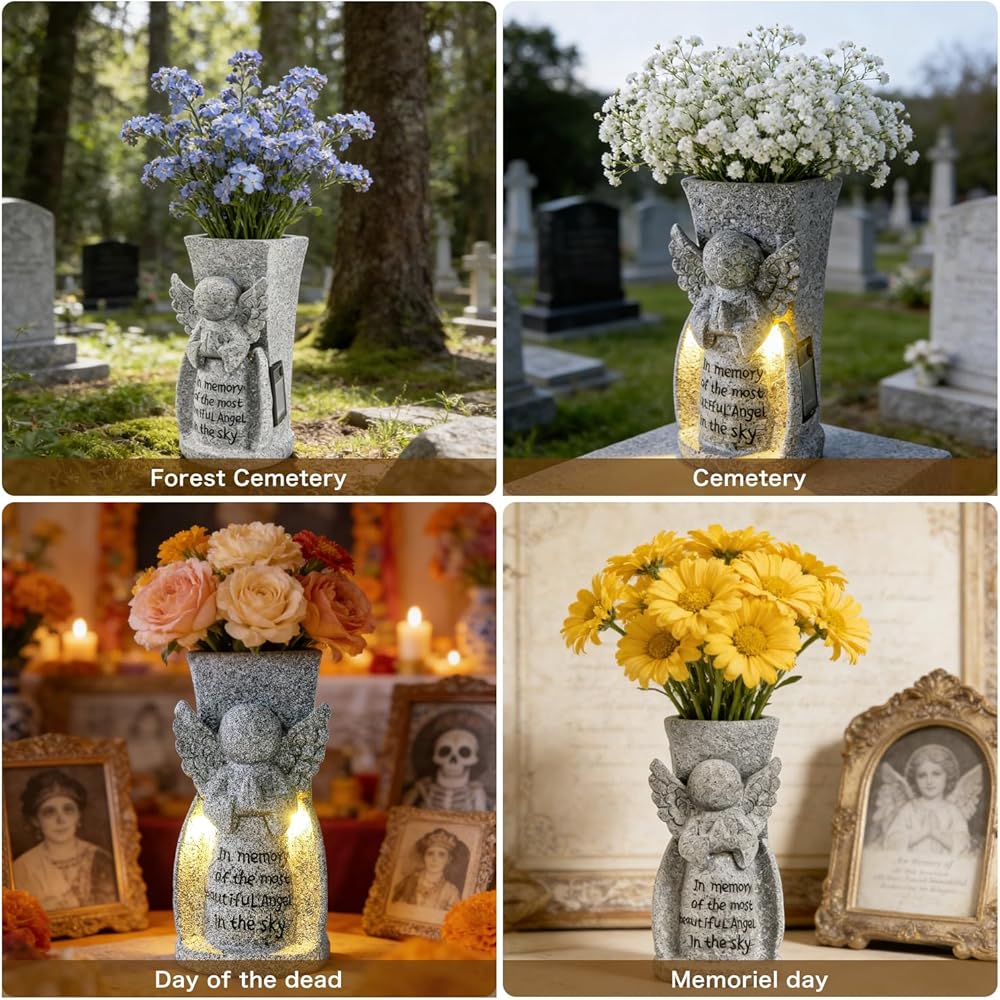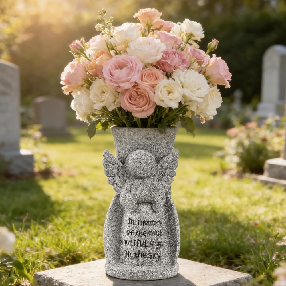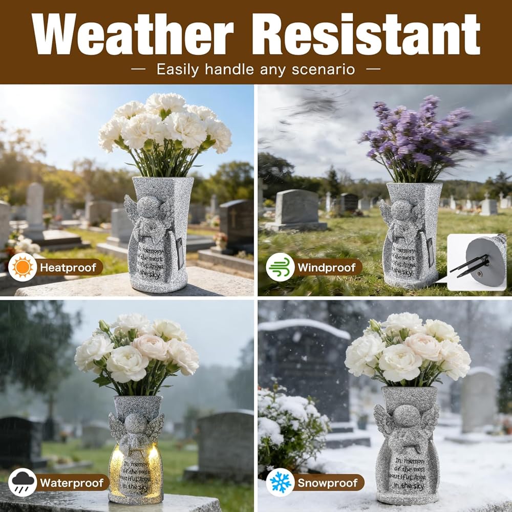 تصميم متين ومقاوم للطقس: مصنوعة من الراتنج عالي الجودة وشديد التحمل، تم تصميم هذه المزهرية التذكارية للعرض في الهواء الطلق على المدى الطويل. تم اختبار التصميم الفائق المقاوم للطقس بالكامل لتحمل العناصر القاسية - بدءًا من الشمس القاسية والأمطار الغزيرة إلى الصقيع والثلج - مما يضمن الحفاظ على جماله وسلامته الهيكلية بشكل مثالي طوال العام في القبر أو الحديقة التذكارية أو الملاذ الخارجي.