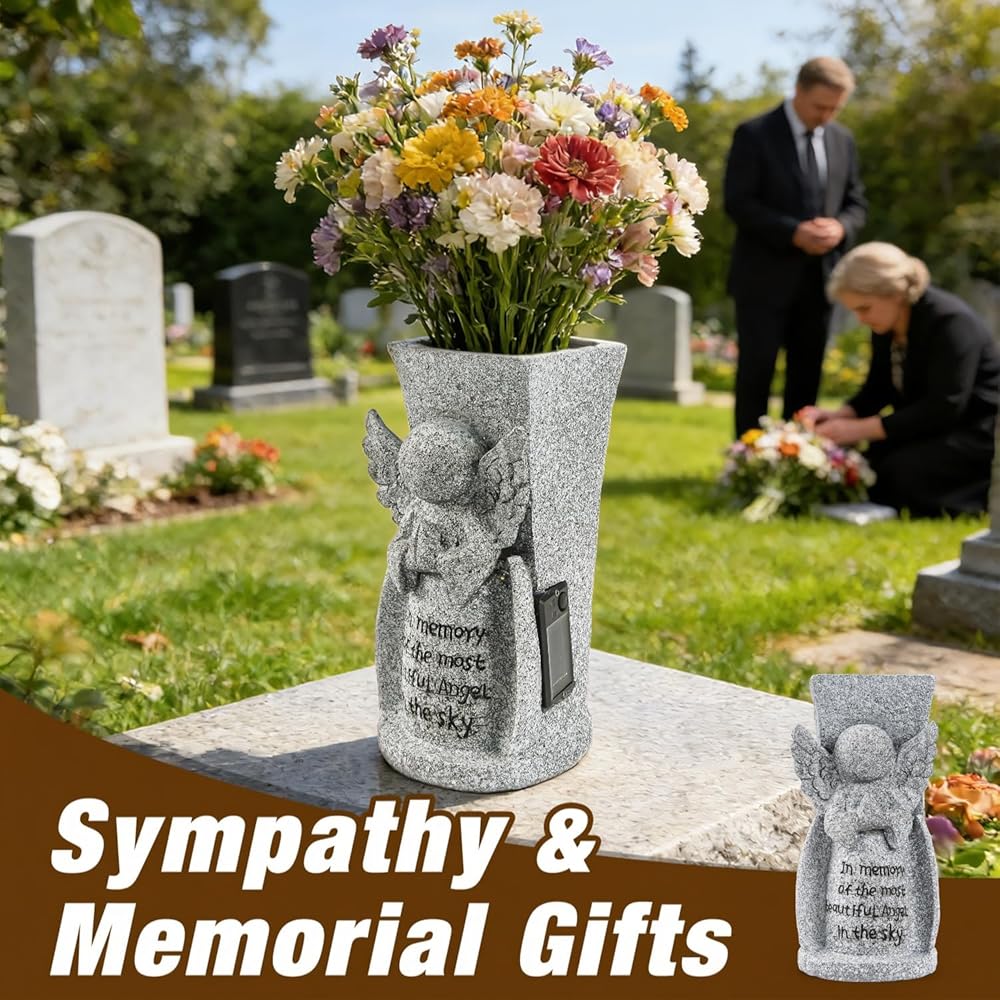 هدية تذكارية ومواساة مدروسة: تم تصميم هذه المزهرية التذكارية الأنيقة لملاك الشمس لتكون بمثابة تحية دائمة لأحبائك. إنها هدية المواساة المثالية من القلب، حيث توفر حضورًا مريحًا وطريقة جميلة لتذكر الأم أو الأب أو أحد أفراد العائلة المحبوبين.