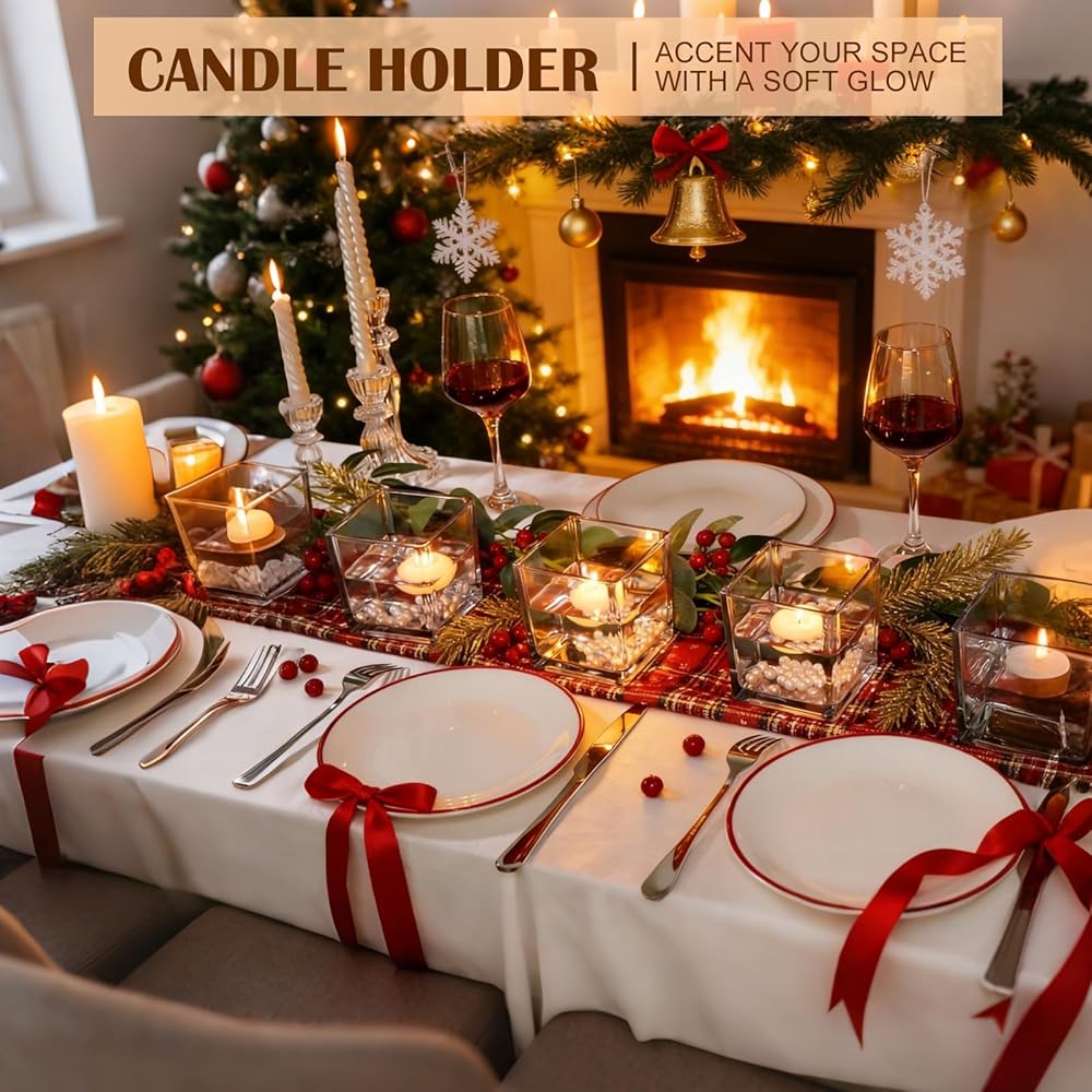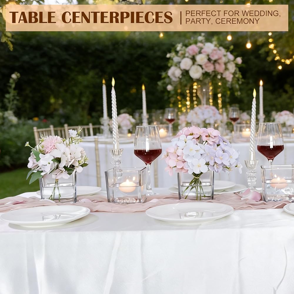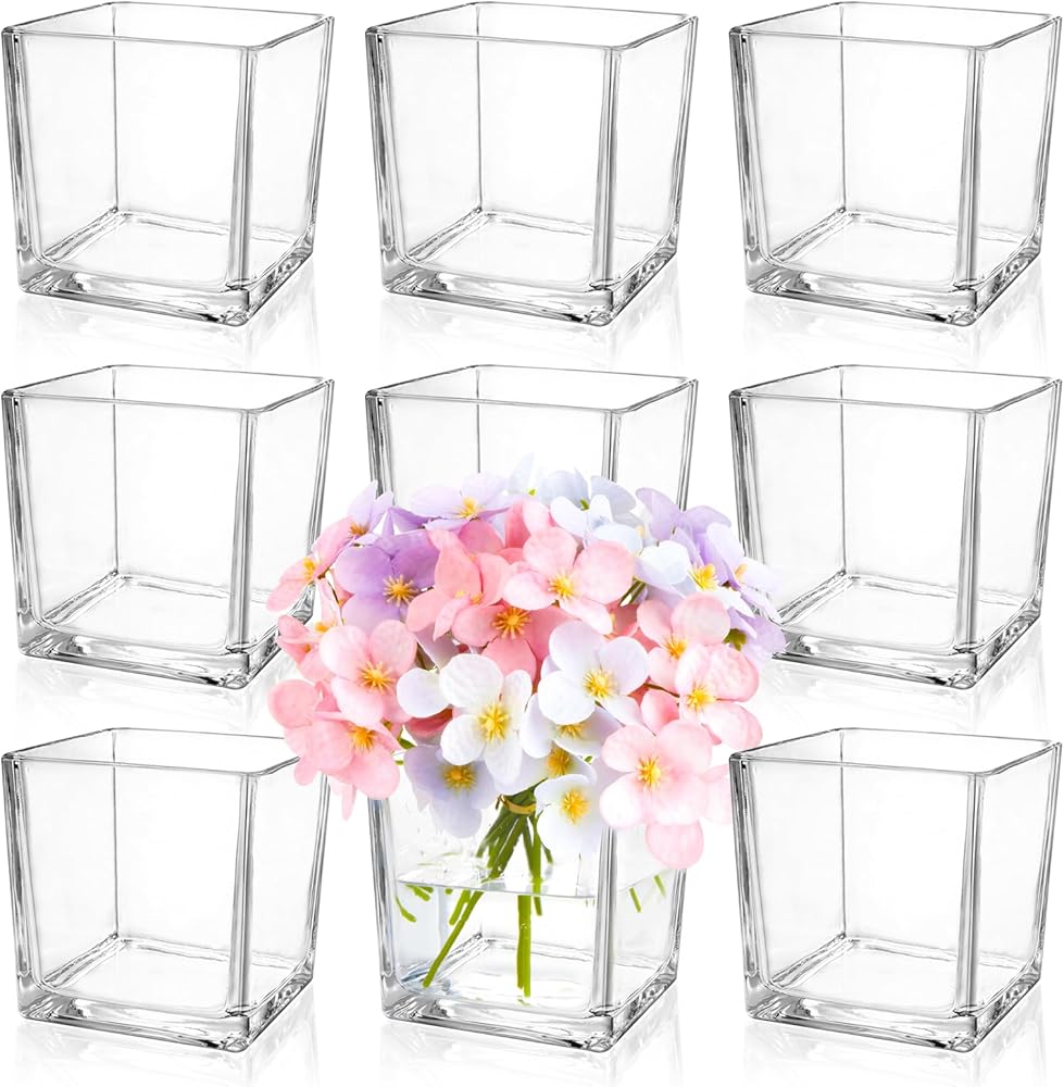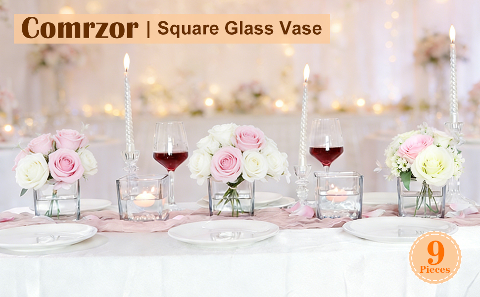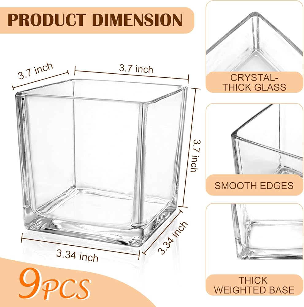 9 عبوات من المزهريات الزجاجية المربعة مقاس 4 × 4 × 4 بوصة، مزهرية زهور شفافة للقطع المركزية، حامل شموع لمناسبات الزفاف، ديكور المنزل