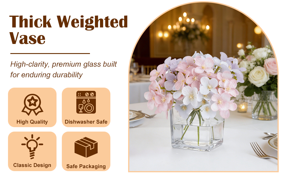 • تصميم مكعب - مع الشكل المربع والمظهر الأنيق البسيط، فإن المزهرية المكعبة الشفافة هي الخيار الأفضل لبناء بيئة لا تُنسى لأي مناسبة. لا تشغل مساحة كبيرة، والارتفاع المناسب يجعلها مثالية لعرض الزهور المقطوفة قصيرة السيقان أو قصاصات النباتات.