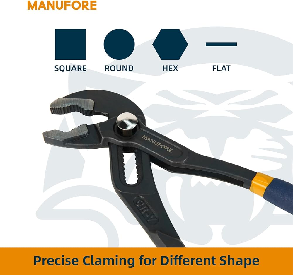 كماشة مضخة مياه من مانفور، 7/10/12 بوصة كماشة مفصلية سريعة الفك مع فك على شكل حرف V، لأنابيب الإمساك والقضبان والأعمدة