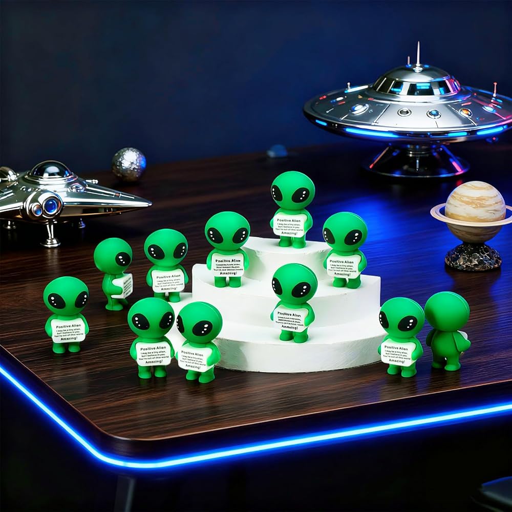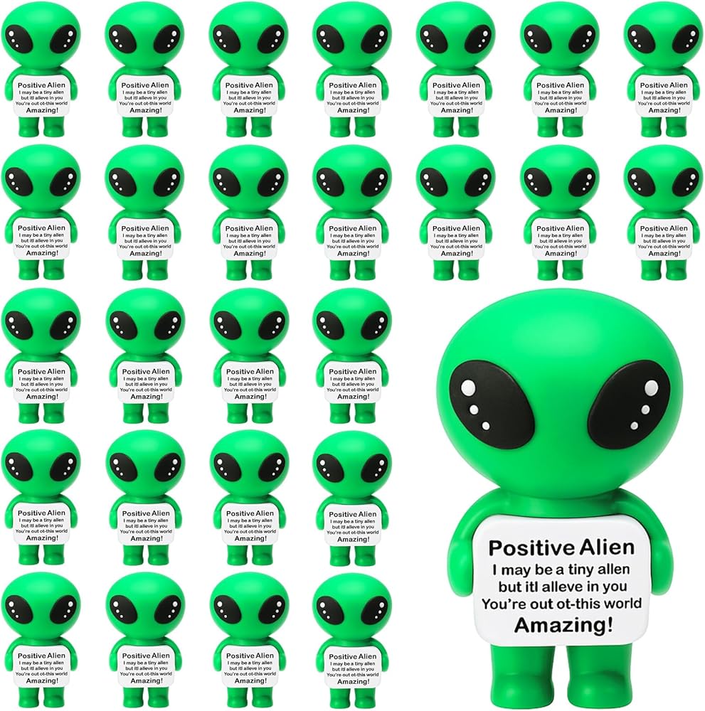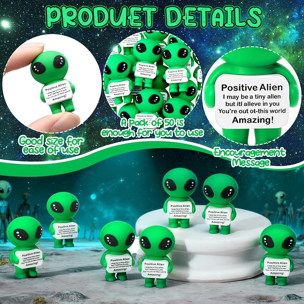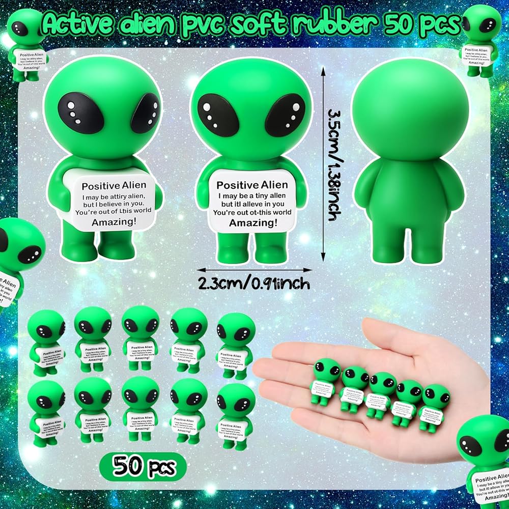 50 Mini Alien Figures: with a package that includes 50 mini rubber aliens, designed with rubber, you'll have plenty to distribute among friends and family; Their charming alien and inspirational design not only delights but also serves as an engaging way to convey motivating messages, ideal for parties and Christmas gifts