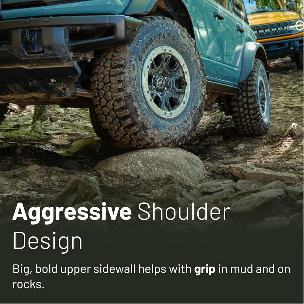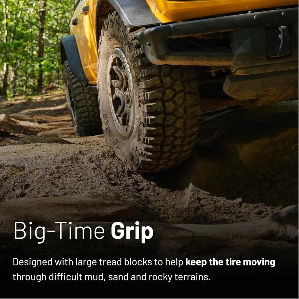 EXTRA PROTECTION: Featuring three-ply construction, the Goodyear Wrangler Boulder MT LT285/75R16 Truck Tire offers confidence over the toughest terrains, while helping protect against damage to sidewalls and treads