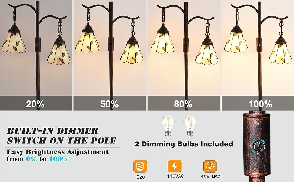【تصميم عتيق】يتم تعليق المصباح الأرضي النحاسي الأحمر مع عاكس الضوء تيفاني القديم بارتفاعات مختلفة. 2 مصباح من مصباح شجرة المزرعة هذا يقع في 90 درجة رأسيًا بشكل منفصل، بدون زاوية إضاءة، يوفر إضاءة ثابتة 360 درجة، يمكنك الاستمتاع بالكامل بأجواء دافئة ناعمة مريحة تحت الضوء