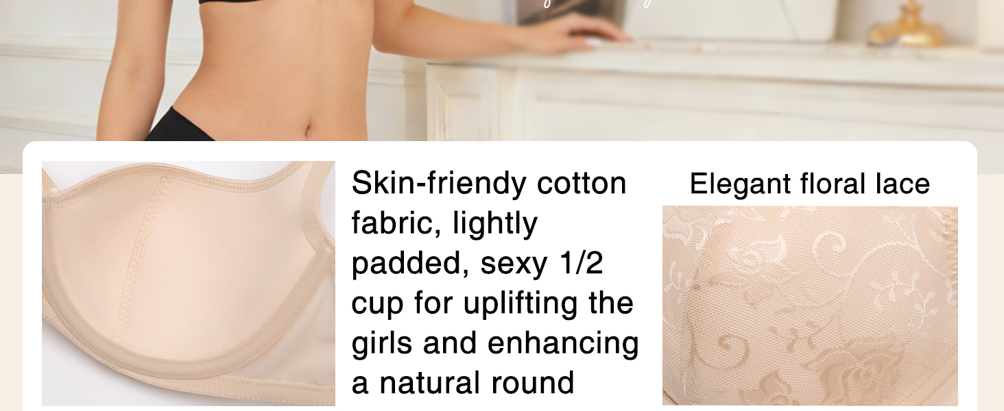 تنوع أنيق - خط الرقبة المنخفض لحمالة الصدر نصف كوب هذه يجعلها خيارًا مثاليًا للارتداء مع الفساتين ذات القصة المنخفضة والقمصان ذات الرقبة المربعة والملابس الكاجوال، مما يضمن لك مظهرًا رائعًا في أي مناسبة.