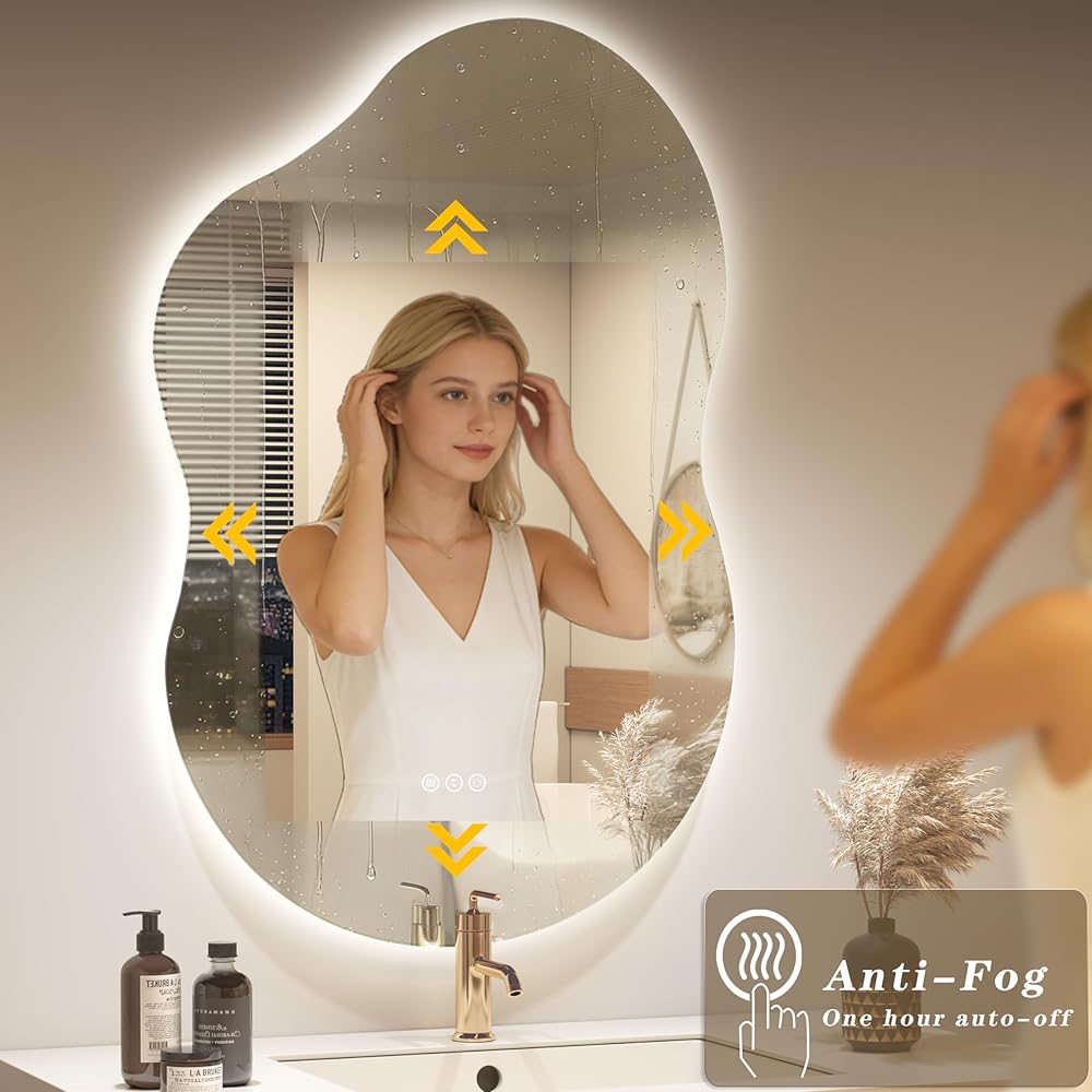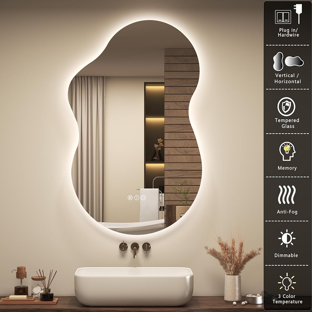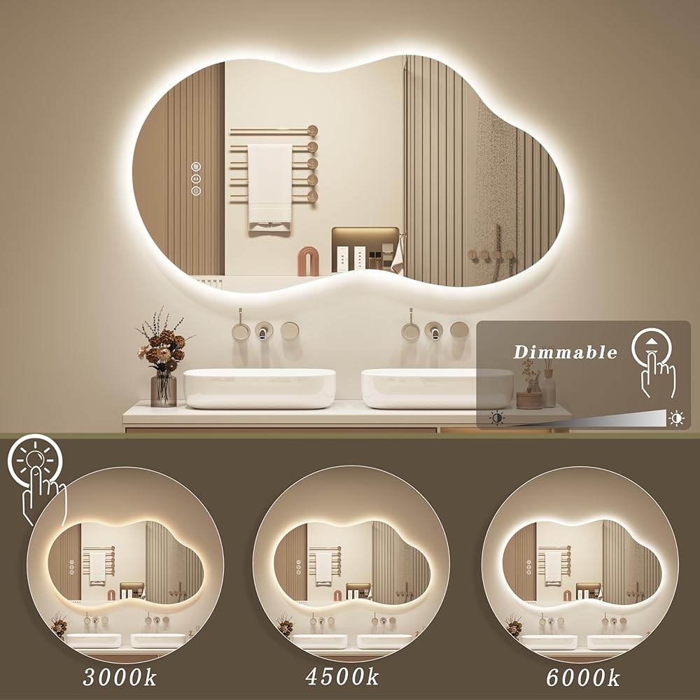 مرآة بإضاءة خلفية على شكل سحابة: تتميز مرآة Okpal ذات الإضاءة الخلفية بتصميم غير متماثل على شكل سحابة يضيف لمسة فنية عصرية إلى ديكور حمامك.