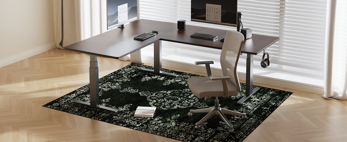 سهلة الحركة: يوفر السطح القماشي الناعم لسجادة الكرسي توازنًا بين النعومة والمتانة. تنزلق الكراسي بسهولة، مما يقلل من إجهاد الساق أثناء الجلسات الطويلة. قل وداعًا لعلامات سحب الكرسي واستمتع بحركة سلسة على سجادة كرسي مكتبك.