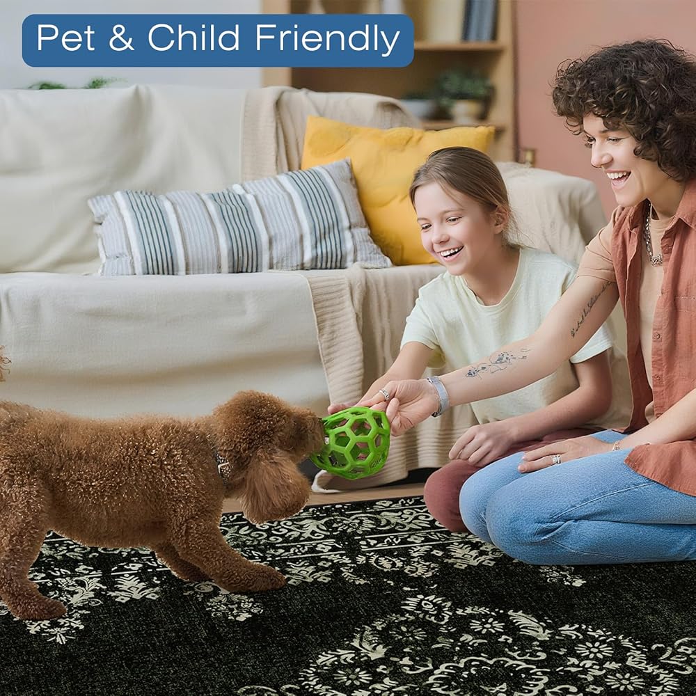 تصميم عتيق: تتميز سجادة المنطقة لدينا بتباين بين الأخضر الداكن والبيج الفاتح، مما يوفر لمسة عصرية وأنيقة تكمل مختلف أنماط المنزل. سواء في المكتب، أو غرفة المعيشة، أو غرفة النوم، فهو يعزز الأجواء بالرقي.