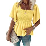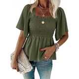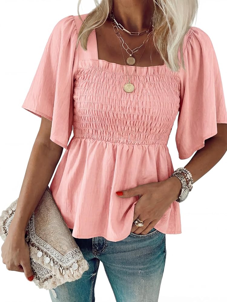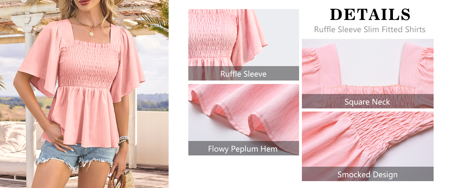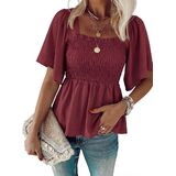 السمات: قمصان بيبلوم للسيدات، قمصان بأكمام مكشكشة / قمصان برقبة مربعة / قمصان فضفاضة / قمصان مدخنة / بلوزات صيفية غير رسمية / بلوزات بيبلوم / قمصان فضفاضة مناسبة / قمصان عصرية 2025 / قمصان بأكمام منتفخة / قمصان بيبي دول تجعلك جذابة في هذا الصيف.