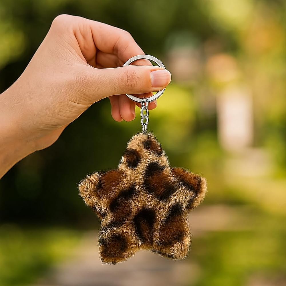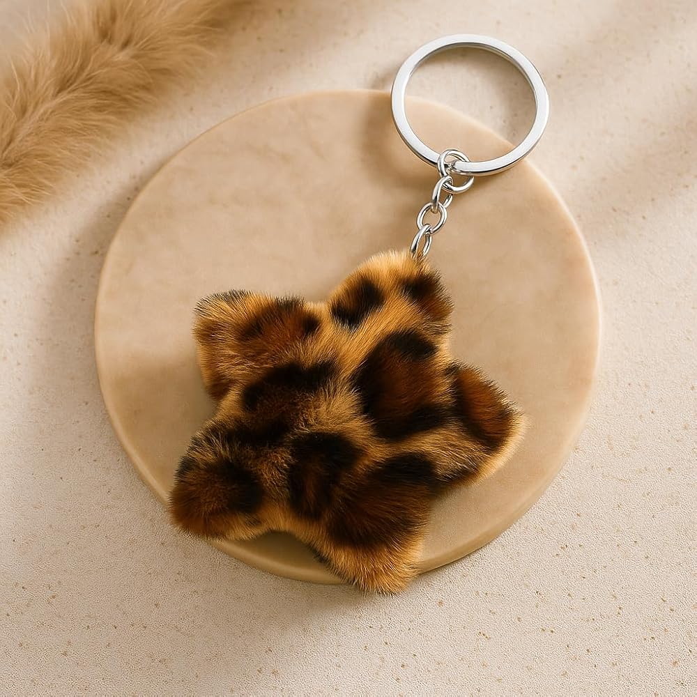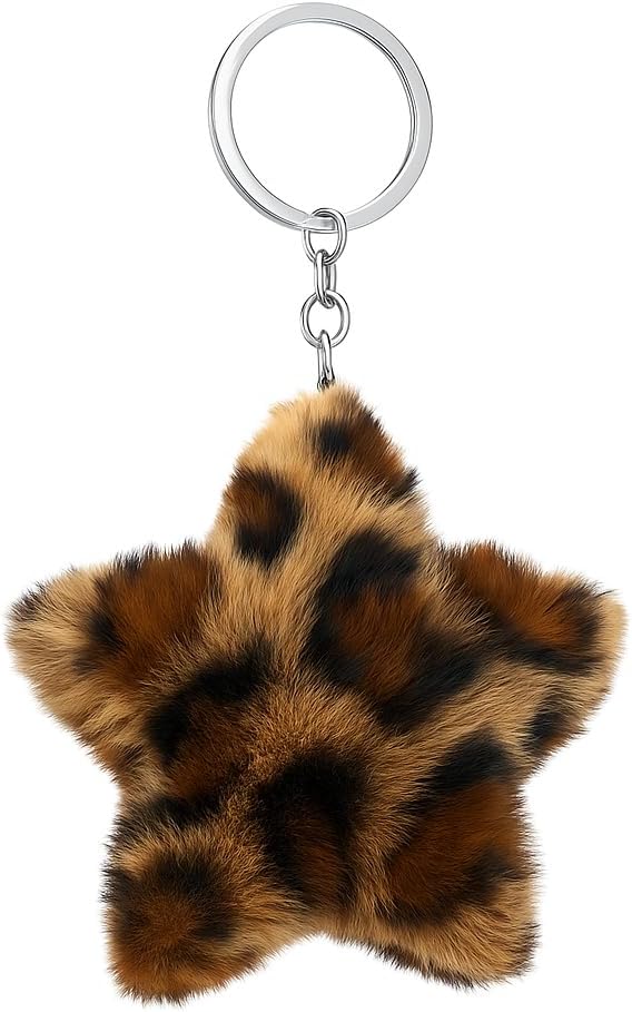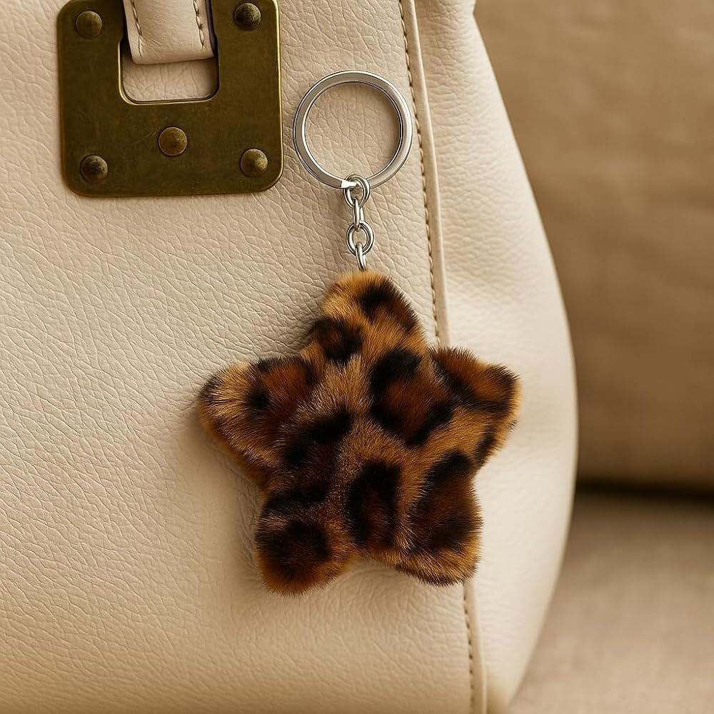Chic Bag Charms for Women: Transform your everyday carry with this stylish plush star. Easily attaches to handbags, backpacks, and totes, adding a touch of trendy animal print and delightful textured fun that makes your accessories stand out from the crowd.