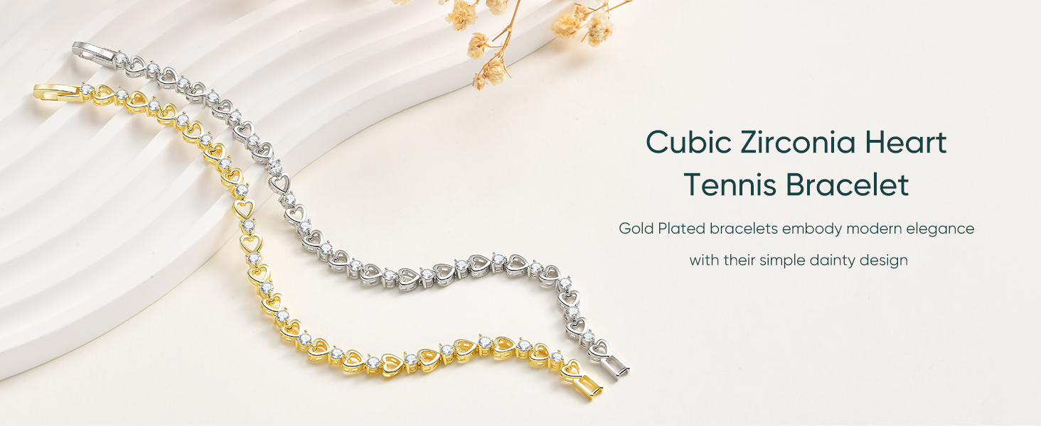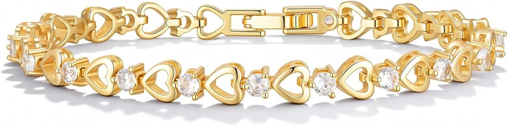 سوار مطلي بالذهب عيار 14 قيراط: مصنوع من النحاس عالي الجودة ولمسة نهائية مطلية بالذهب عيار 14 قيراط، يوفر سوار التنس على شكل قلب لمعانًا فاخرًا يدوم طويلاً يقاوم التشوه. لا يسبب الحساسية وخالي من النيكل والرصاص، وهو آمن للبشرة الحساسة، مما يسمح لك بارتدائه بشكل مريح طوال اليوم.