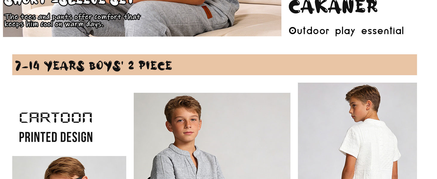 نسيج ناعم: مصنوع من نسيج ناعم بملمس فريد من نوعه، هذه المجموعة المكونة من قطعتين تحافظ على برودة الأولاد وراحتهم طوال اليوم. خفيف الوزن وناعم على البشرة، ويتحرك معه بسهولة أثناء اللعب أو النزهات أو الاسترخاء في المنزل