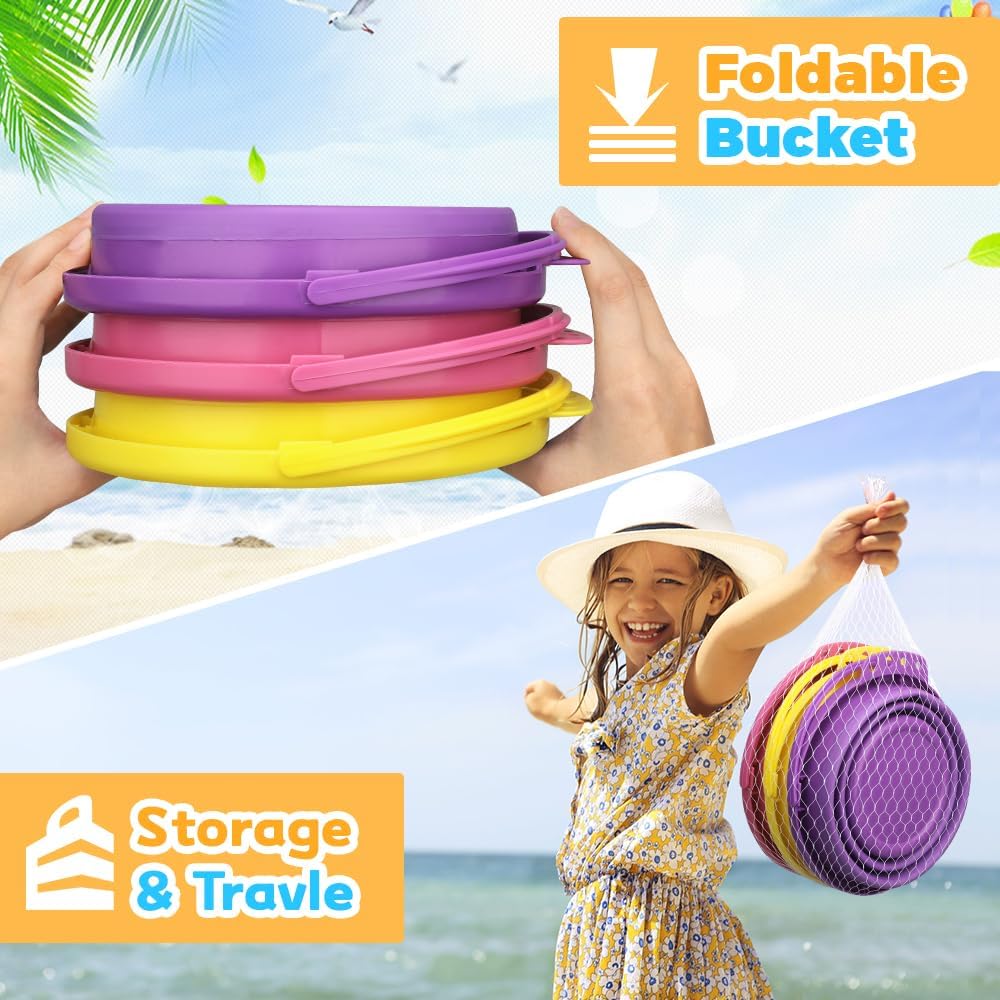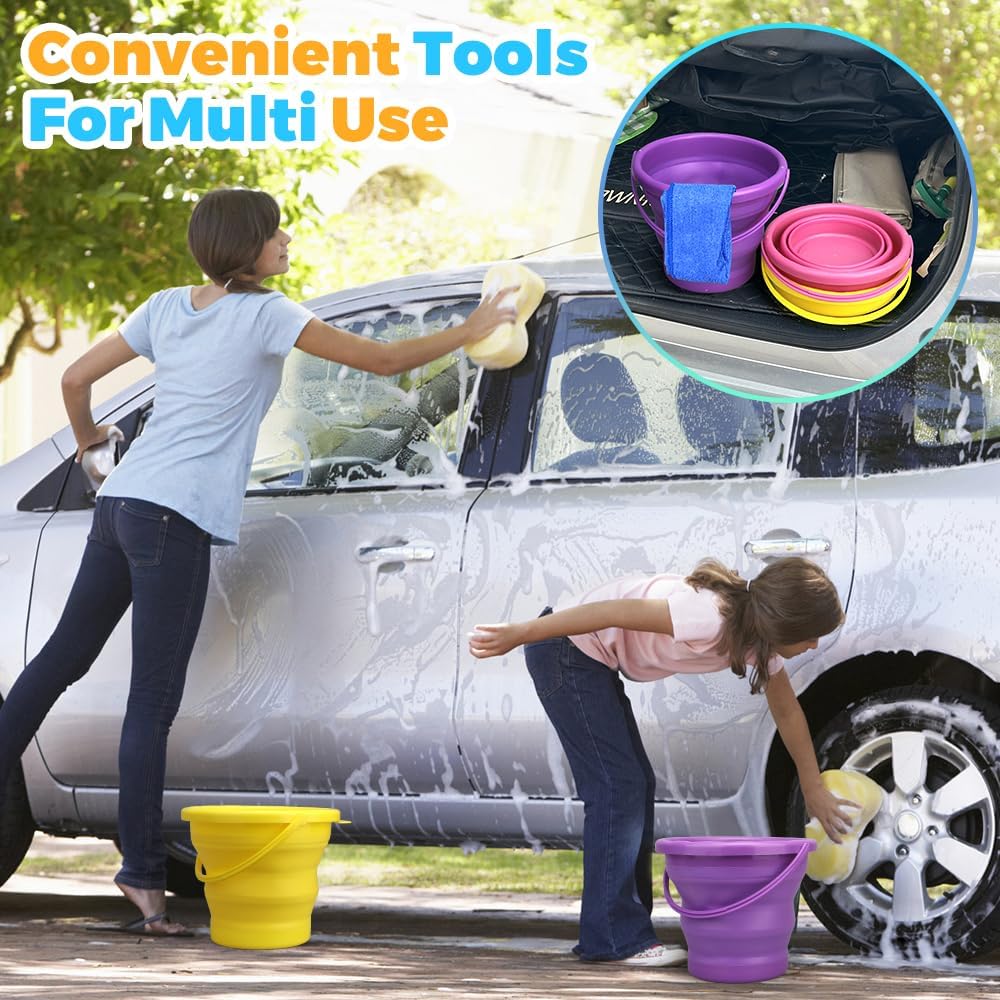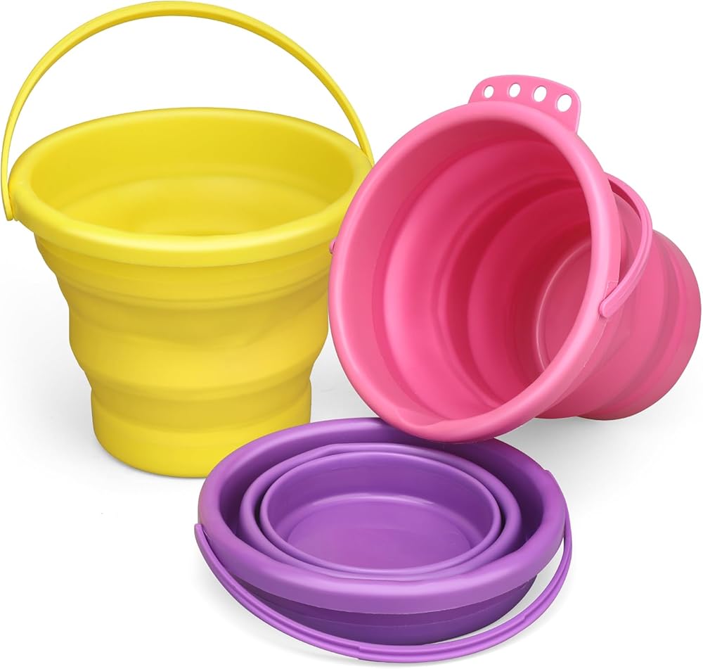 Versatile for Indoor & Outdoor Use: This set of 3 collapsible buckets is a multi-purpose essential for every home and adventure; Use them as beach sand buckets for kids, cleaning buckets for house or car washing, ice buckets for drinks, or storage containers for camping, hiking, fishing, boating, and more