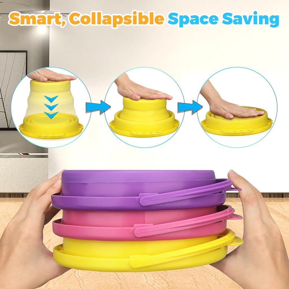 Premium & Safe Materials: Our collapsible buckets are crafted from BPA-free, non-toxic materials, so you can feel confident using them for family activities, from beach play to kitchen tasks; The smooth, rounded edges on every corner help reduce the risk of finger injuries, supporting safe use for both kids and adults