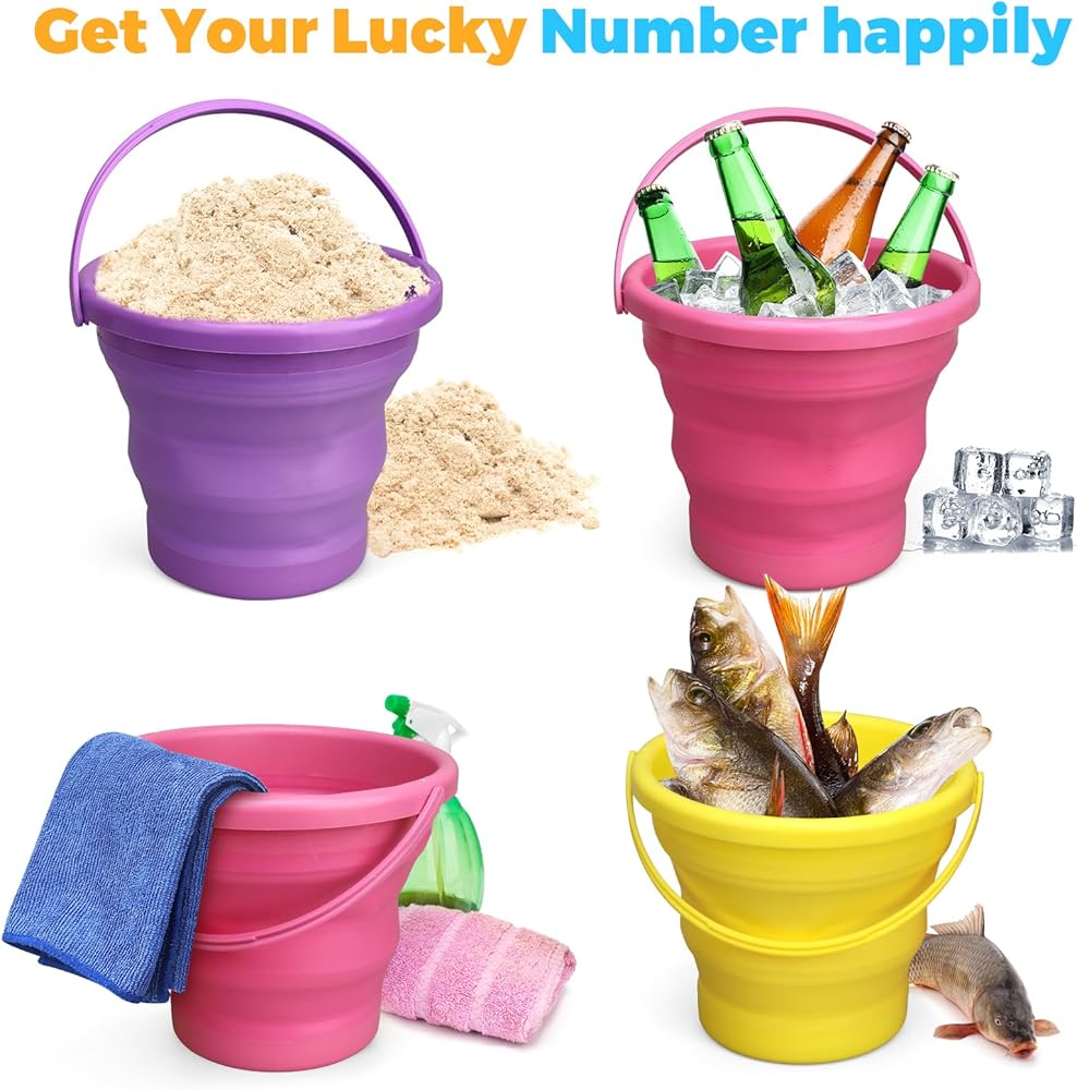 Foldable & Space-Saving Design: Each bucket collapses in seconds to a compact size, helping you save valuable storage space; When folded, they fit easily in beach bags, backpacks, car trunks, or camping gear; The built-in hanging hole lets you hang them on walls or hooks for convenient, clutter-free storage