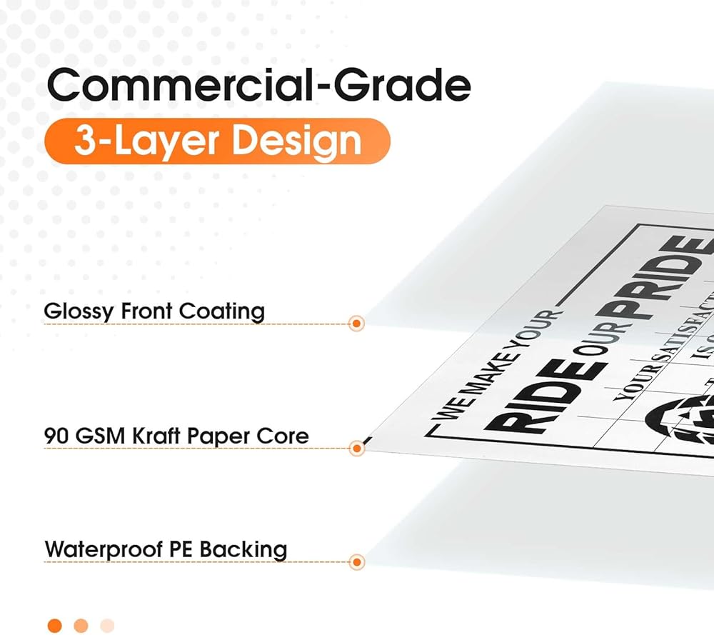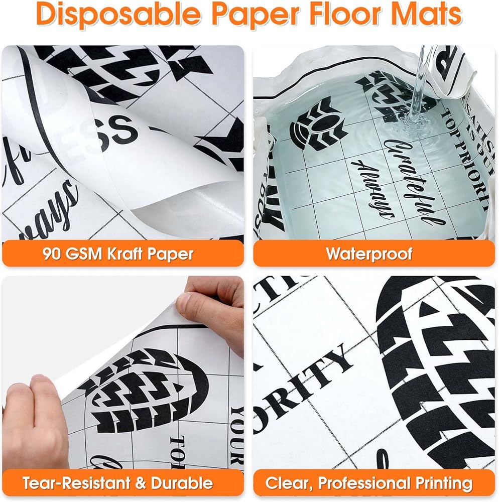 • Heavyweight 3-Layer White Kraft Paper Protection - Constructed from premium 90gsm white kraft paper with a waterproof laminated backing and a smooth top coating, these disposable car floor mats are thicker, stronger, and more durable than standard paper mats—designed to resist moisture, tearing, and daily shop wear.