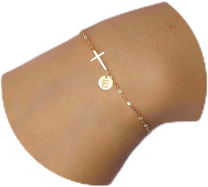 Dainty Design: Unique monogram and cross double layer design bracelet, seamlessly blending faith and fashion to complement any outfit