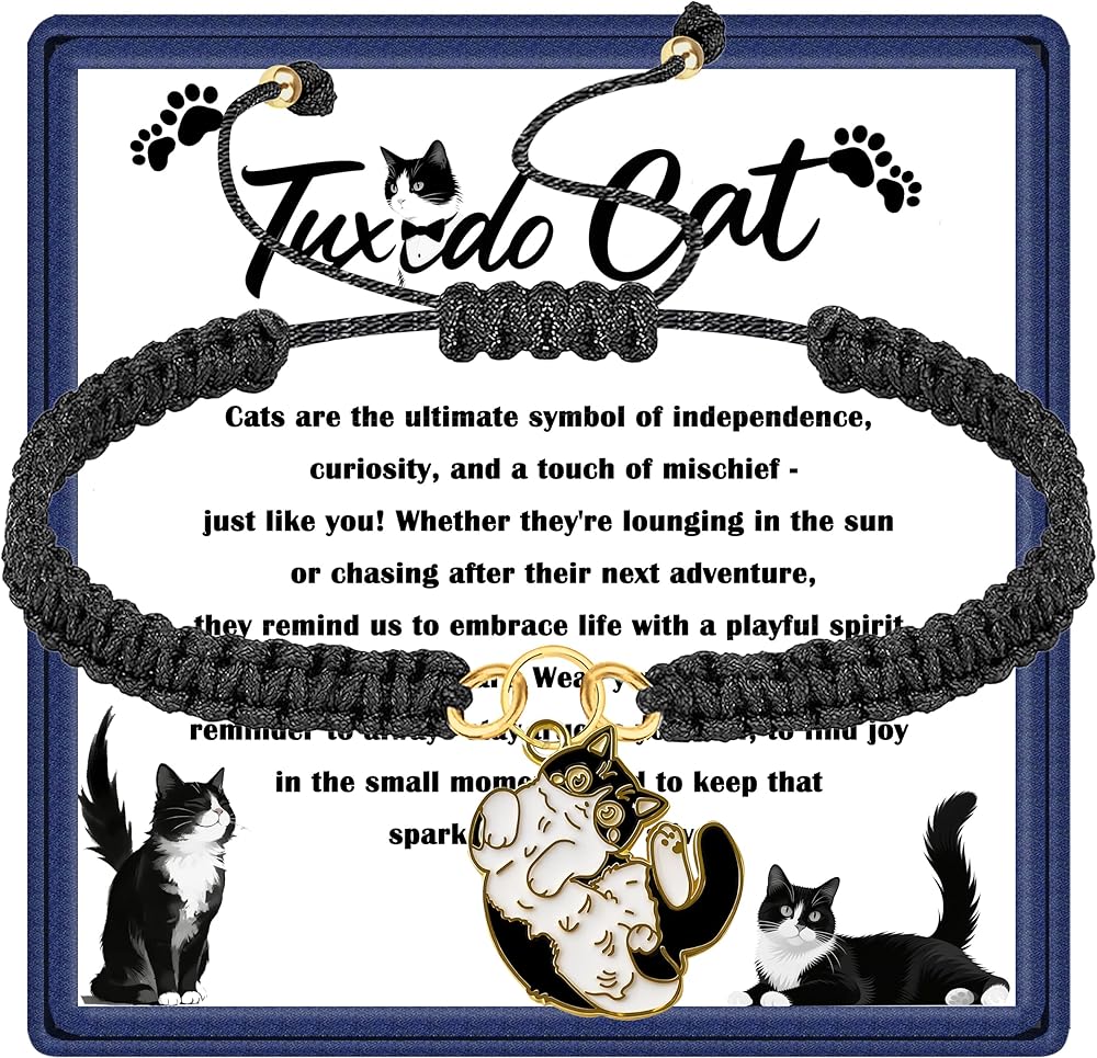 Cute Tuxedo Cat Bracelet for Women Men, Black and White Tuxedo Cat Gifts for Daughter Granddaughter Sister Niece Cat Lover Animal Lover