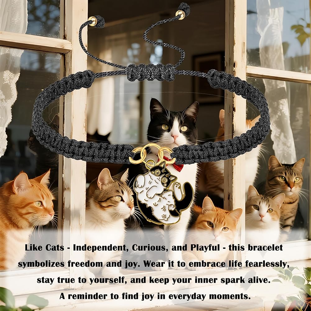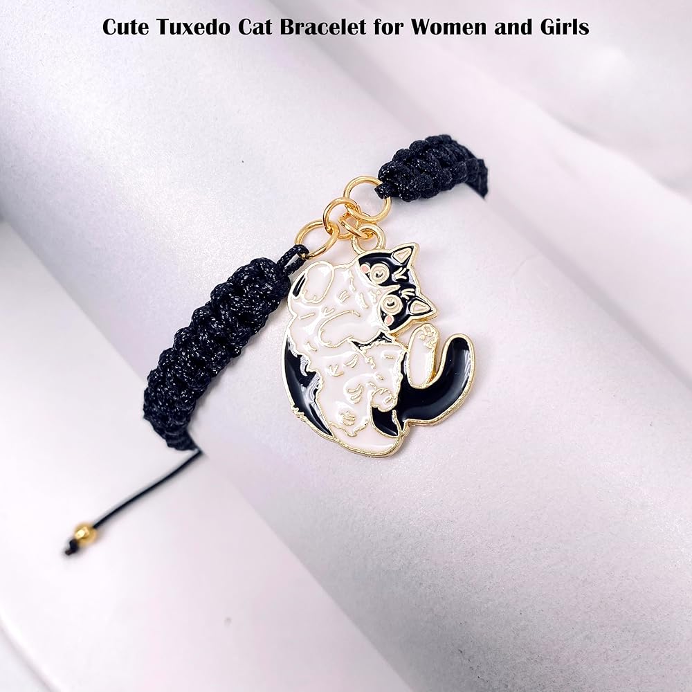 ✔Cute Cat Bracelet: This black rope braided bracelet with a cute tuxedo cat charm has an exquisite design and is a great gift for cat lovers.