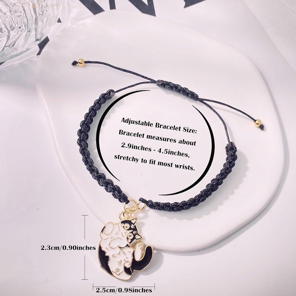 ✔High Quality Material and Adjustable Size: This rope braided bracelet is made of sturdy rope. Sturdy and comfortable to wear. Cat Bracelet measures about 2.9inches - 4.5inches, stretchy to fit most wrists. Tuxedo Cat Charm: 23mm(0.9'')*25mm(0.98'').