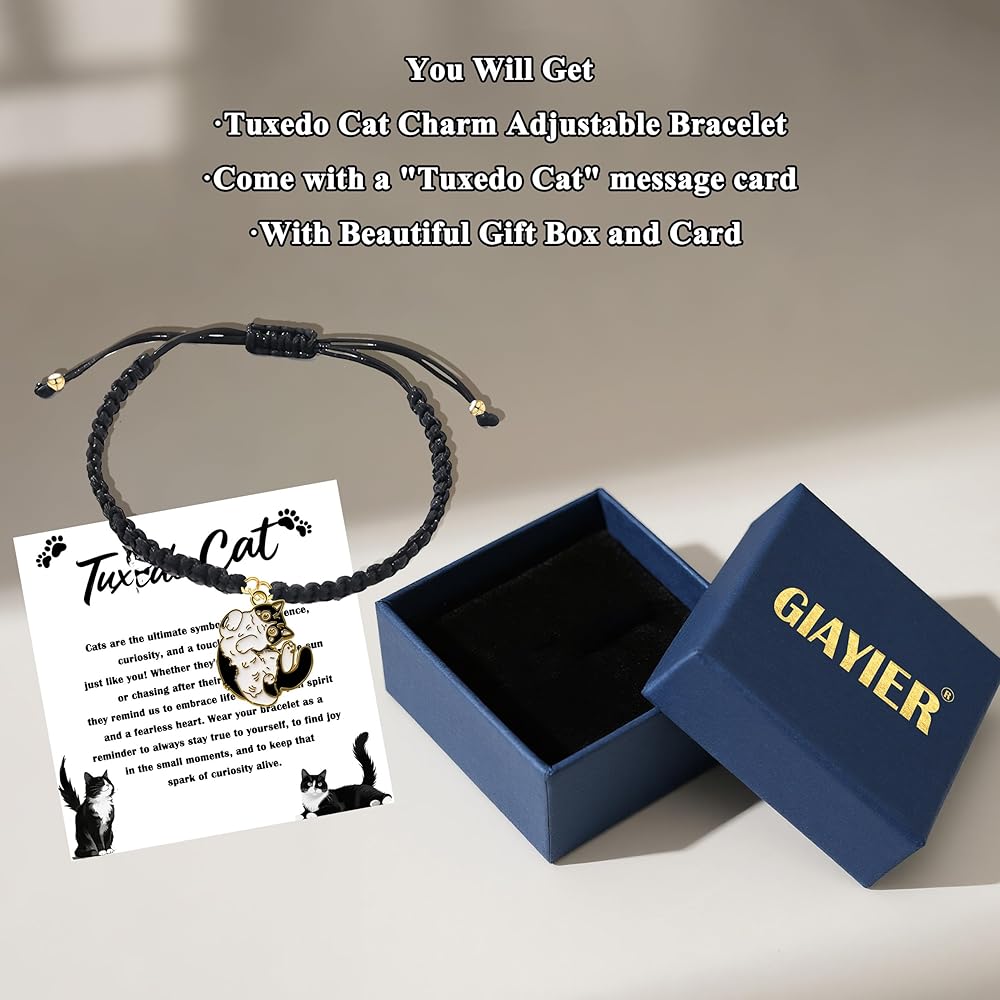 ✔Exquisite Packaged: Tuxedo Cat Bracelet comes in a Beautiful Gift Box and ready for gift giving. Come with a "Tuxedo Cat" message card. Let this cat bracelet bring the receiver joy and companionship.