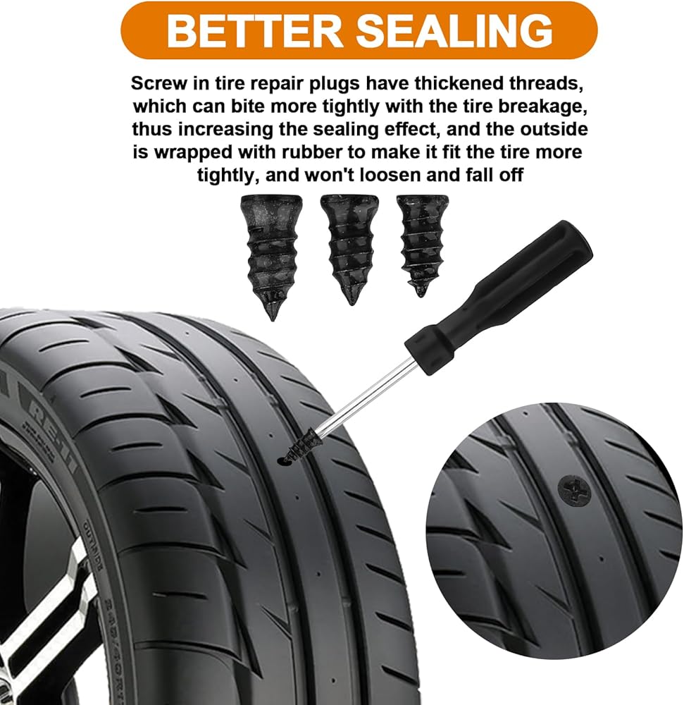 Secure Sealing & Firm Grip – Designed with threaded structure for better bite and sealing, effectively locking into tire breaks and preventing air leakage.