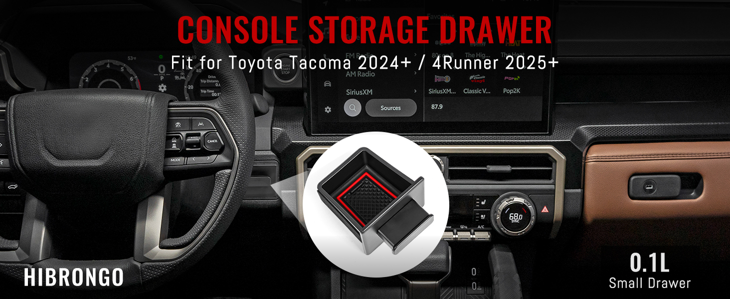 ملاءمة مثالية: درج تخزين HIBRONGO متوافق مع Toyota Tacoma 2024 2025 2026 Toyota 4Runner 2025 2026 (ملاحظة: يرجى التأكد أولاً مما إذا كانت السيارة تحتوي على حجرة)