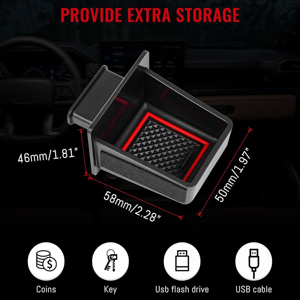 تعزيز مساحة التخزين الإضافية: درج تخزين مناسب لسيارة Toyota Tacoma 2024 2025 2026 4Runner 2025 2026 يحول المقصورات غير المستخدمة بسهولة إلى مساحة تخزين مفيدة دون التأثير على تشغيل المناطق الأخرى، وهو مثالي للجزء الداخلي من سيارتك. يمكن لدرج تخزين الكونسول المركزي وضع النقود والعملات المعدنية وما إلى ذلك
