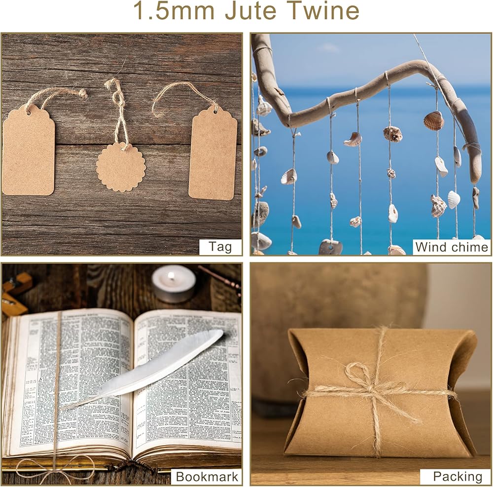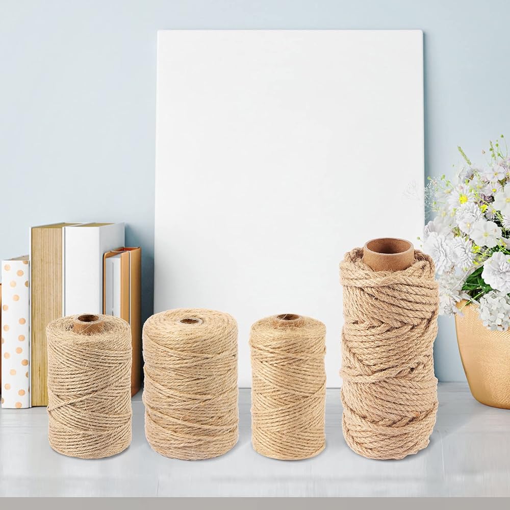 【تشمل التعبئة】نقدم أربعة أحجام من حبل الجوت. يبلغ طول خيوط الجوت 1.5 مم و2 مم و3 مم 328 قدمًا. ويبلغ طول خيوط الجوت 6 مم 82 قدمًا. وهذا يمكن أن يلبي جميع احتياجاتك المختلفة. يرجى التحديد كما هو مطلوب.