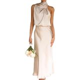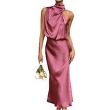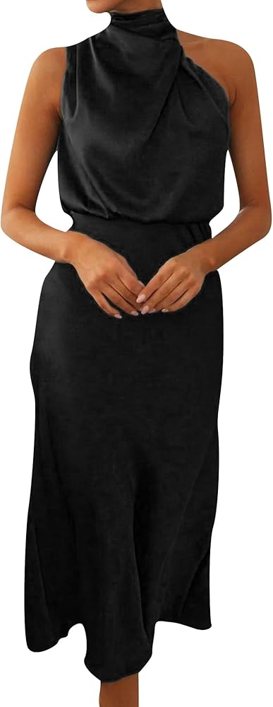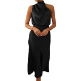 المميزات: فستان ستان، فستان متوسط الطول بدون أكمام، رقبة وهمية، فستان متوسط الطول. تجعلك أكثر جمالاً وأناقة وإثارة وأناقة.